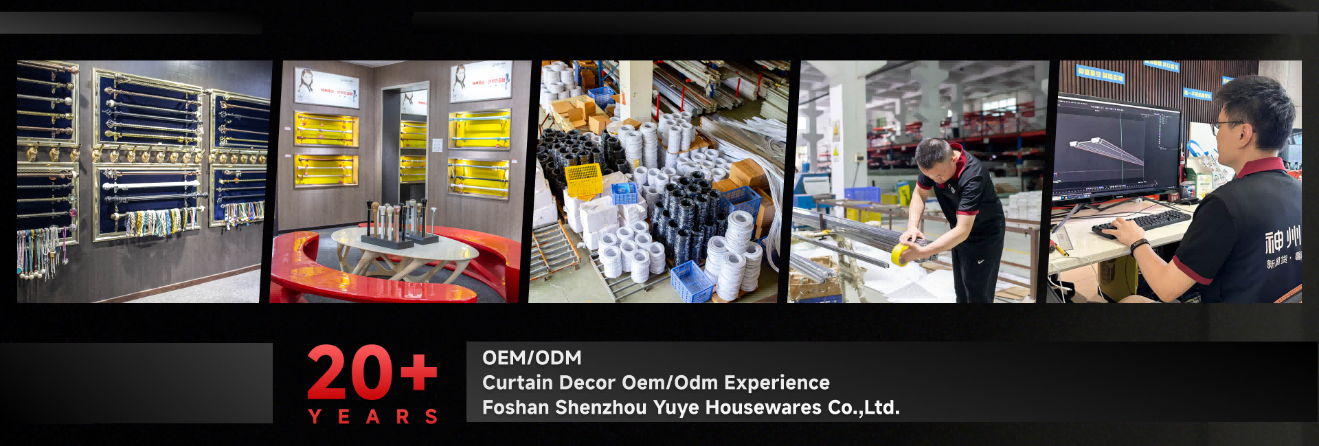 Foshan Shenzhou Yuye HousewaresC0.:Ltd.ProfessionalISManufacturer In Curtain Decor WithMore Than20 Years ProductionExperience,QC Team And SalesService Team. We Are Specialized InDeveloping,Producing And SellingMotorized Curtain,Curtain Rods,Curtain Tracks, Ready-Made BlindsAnd Accessories, Etc.