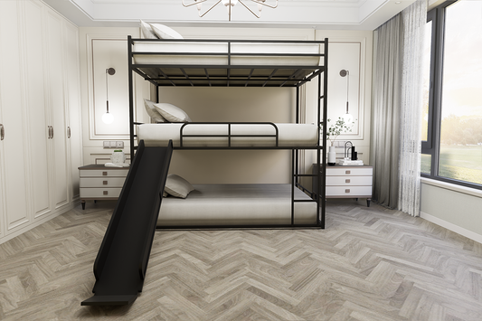Metal Full Size Loft Bed with Slide and Ladder, Black