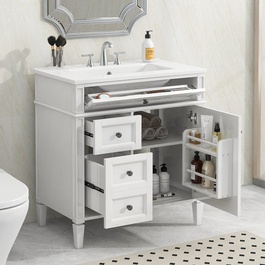 30' Bathroom Vanity with Sink Combo, Multi-functional Bathroom Cabinet with Doors and Drawer, Solid Frame and MDF Board, White (Old Sku:SY999606AAK)