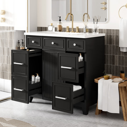 36' Bathroom Vanity Cabinet with Sink Top Combo Set , Black ,Single Sink,Shaker Cabinet with Soft Closing Door and 3 Drawers