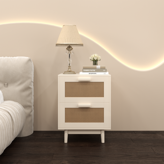 2-Drawer Nightstand for Bedroom, Mid Century Retro Bedside Table with Classic Design,White