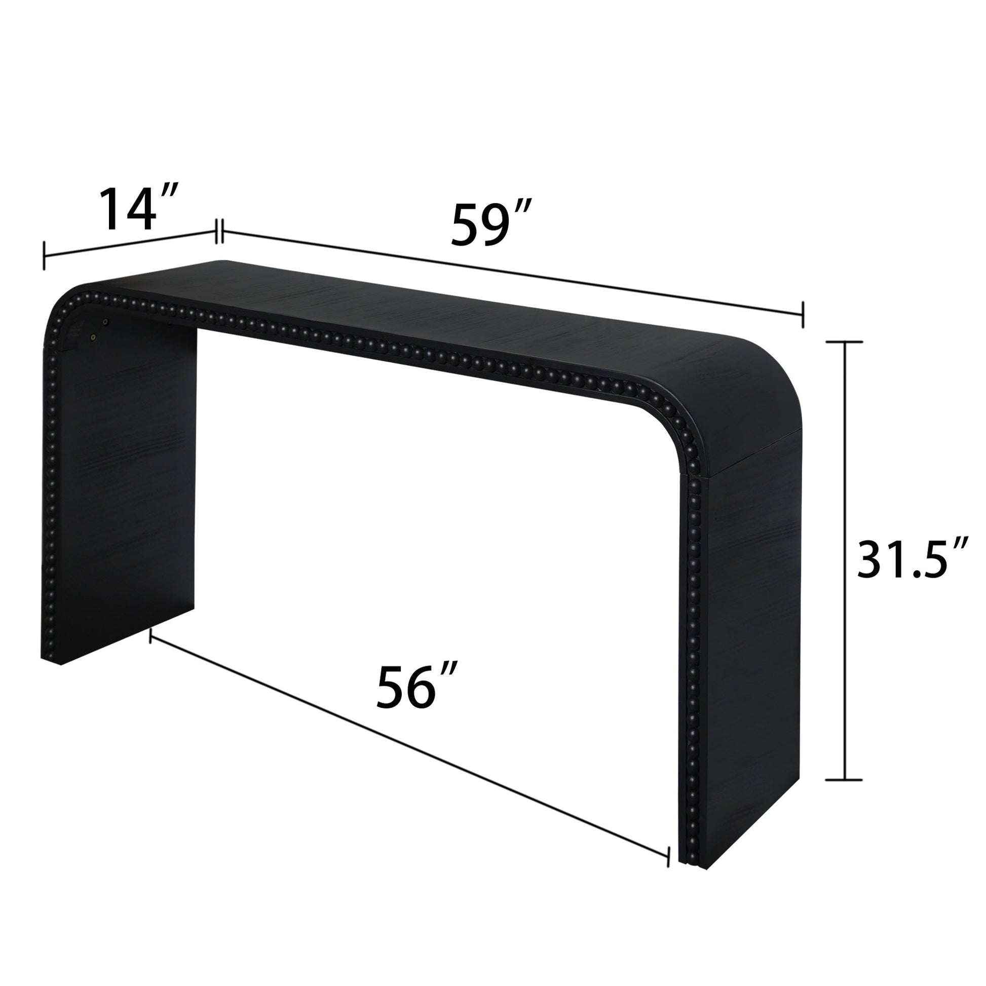 Black wood Console Table, 59in Entryway Table, Curved Waterfall-style Table,Console table with wood beads,Entrance Table for Entryway, Hallway, Living Room, Foyer, Corridor, Office