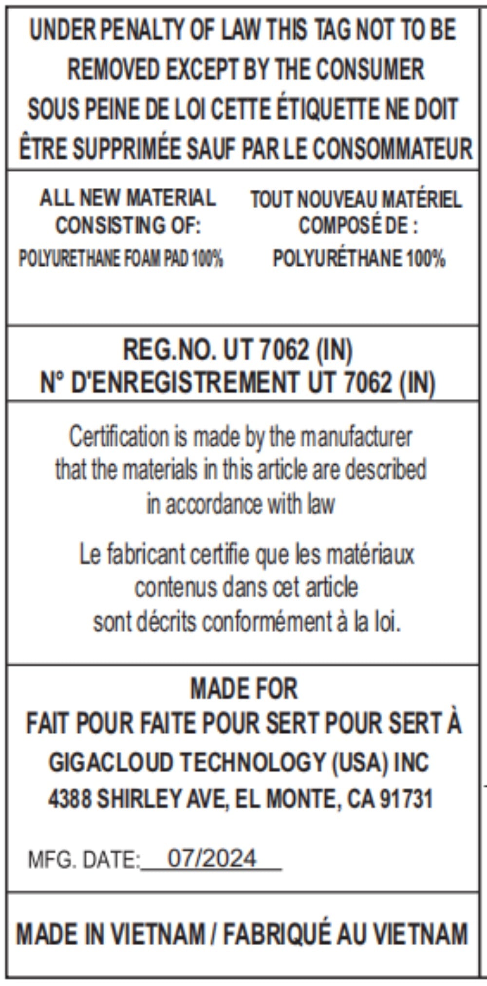 | Bed Size | Twin |