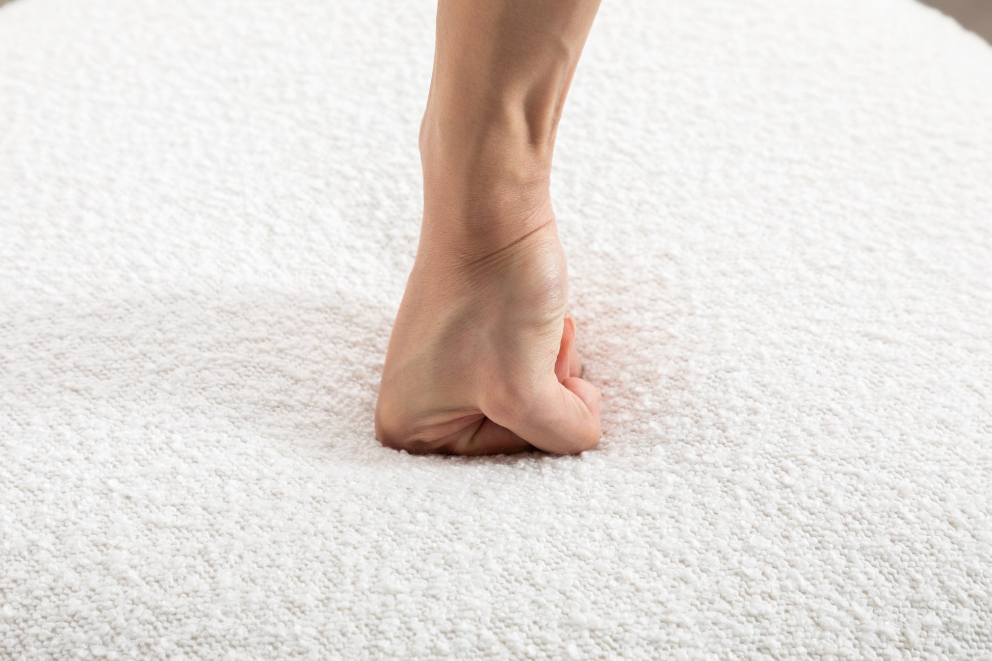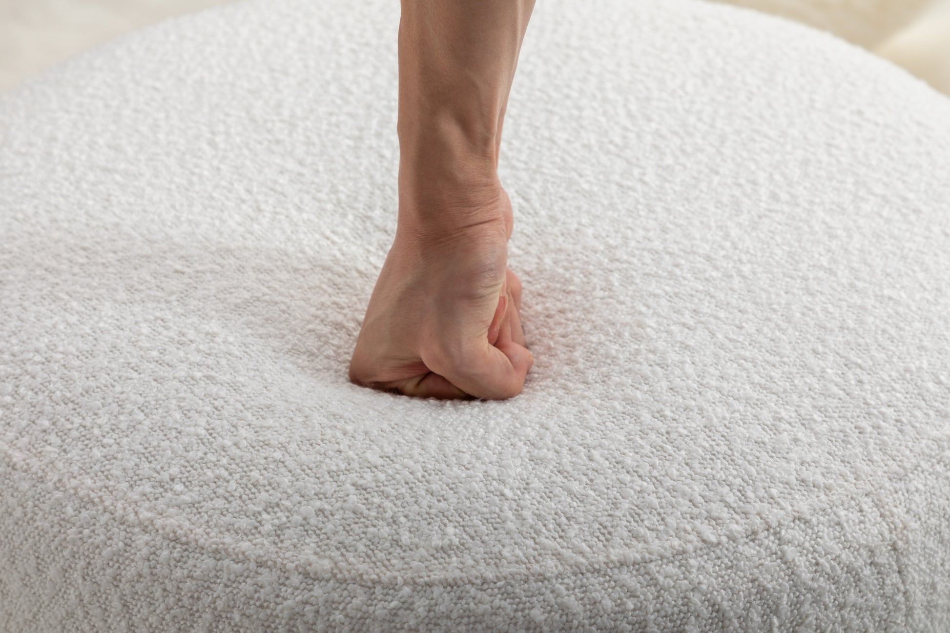 007-Boucle Fabric Storage Round Ottoman Footstool With Wooden Shelving,Ivory