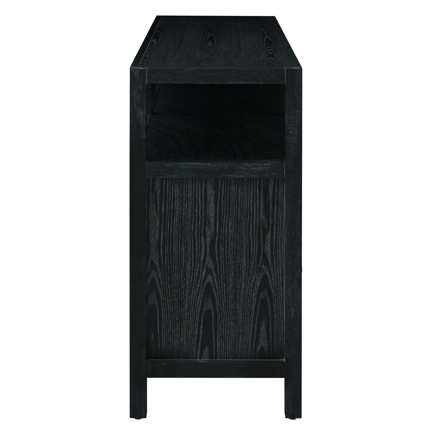TREXM Bohemian Style Rattan Buffet Storage Cabinet with Solid Wood Frame, Sideboard with 3-position Adjustable Shelves for Living & Dining Rooms, No-Handle Push-to-Open Design (Black)