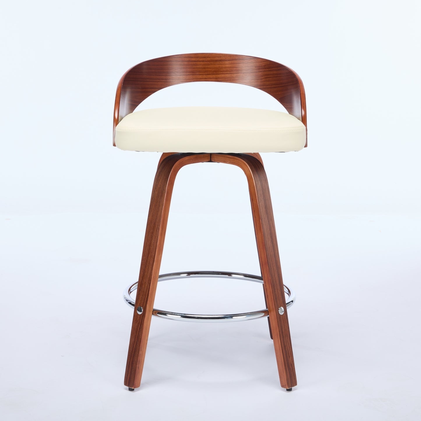 Bar Stools Set of 2, Swivel Bar Height Stools with Low Back, Wood Bar Chairs with Soft Cushion Seat, 25-Inch Seat Height (Beige, 25' Counter Height)