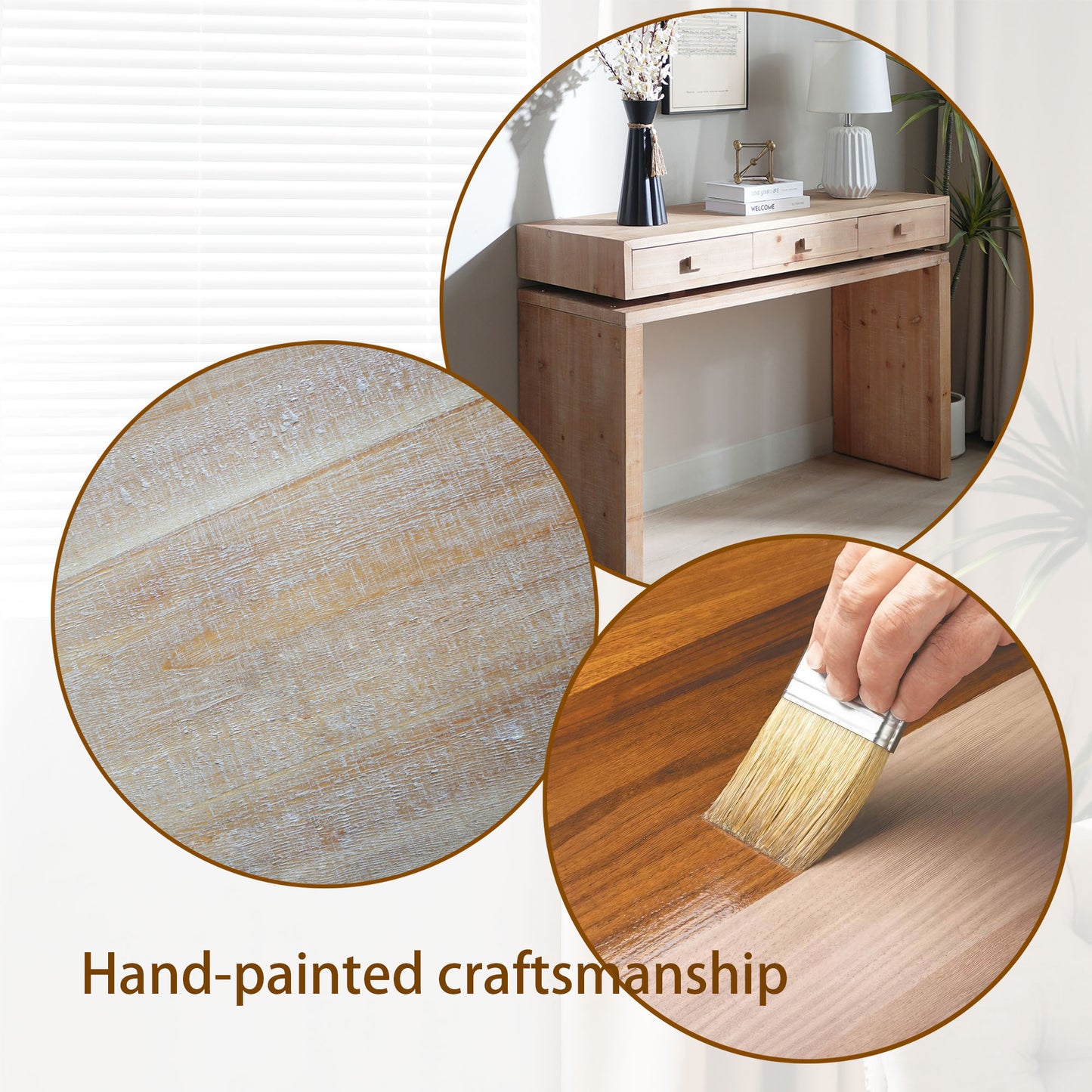 - Spacious Storage - Features three drawers with minimalist wooden handles, offering convenient storage for keys, documents, or small essentials.