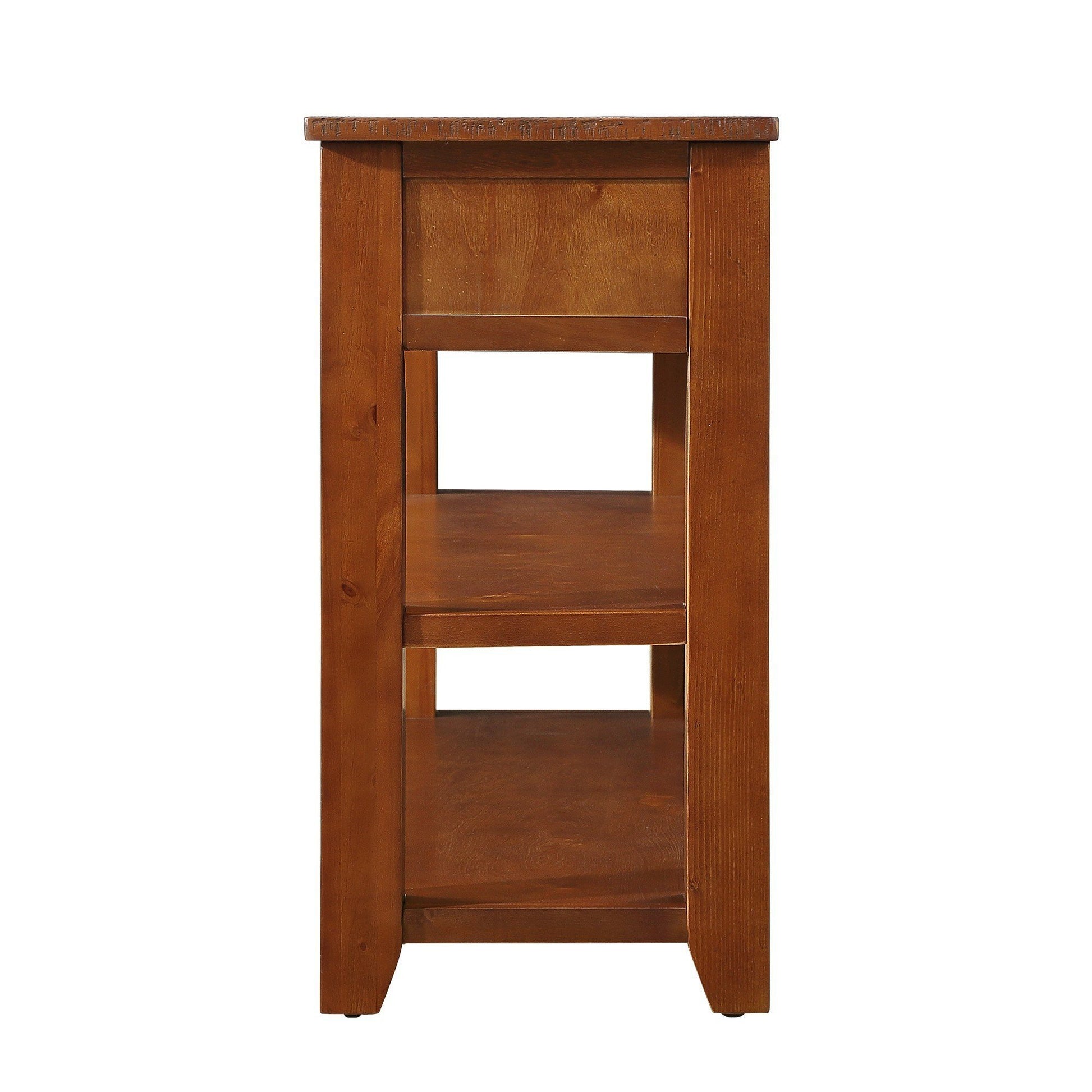 48'' Solid Pine Wood Top Console Table, Modern Entryway Sofa Side Table with 3 Storage Drawers and 2 Shelves. Easy to Assemble (Brown)