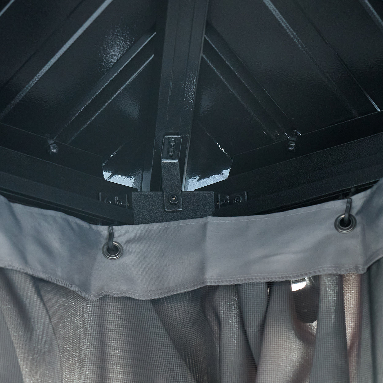 - High-Quality Materials:Crafted with an aluminum frame, galvanized steel top, and premium polyester curtains, ensuring long-lasting durability. The sturdy frame and reinforced connections provide exceptional strength and stability.