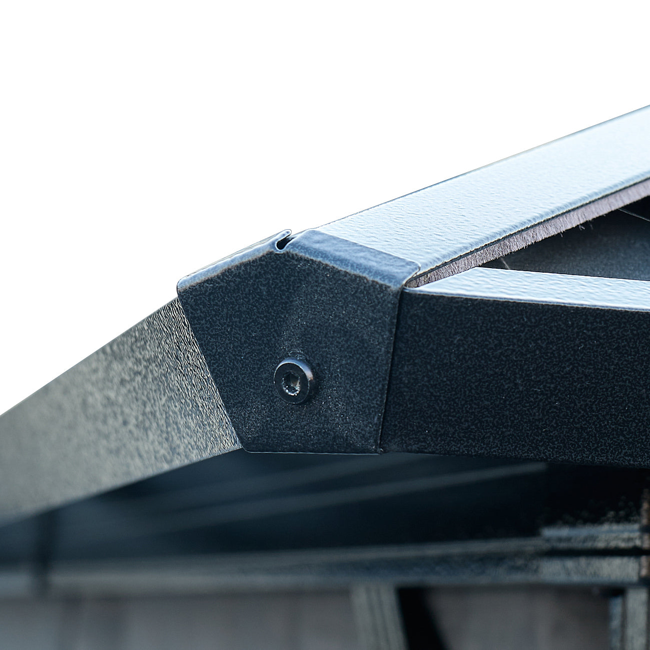 - Sturdy Aluminum Frame:Powder-coated, rust-resistant aluminum frame with reinforced 76x76x1.1mm corner posts and pre-drilled holes in the base for stable installation, offering excellent wind resistance up to level 9.