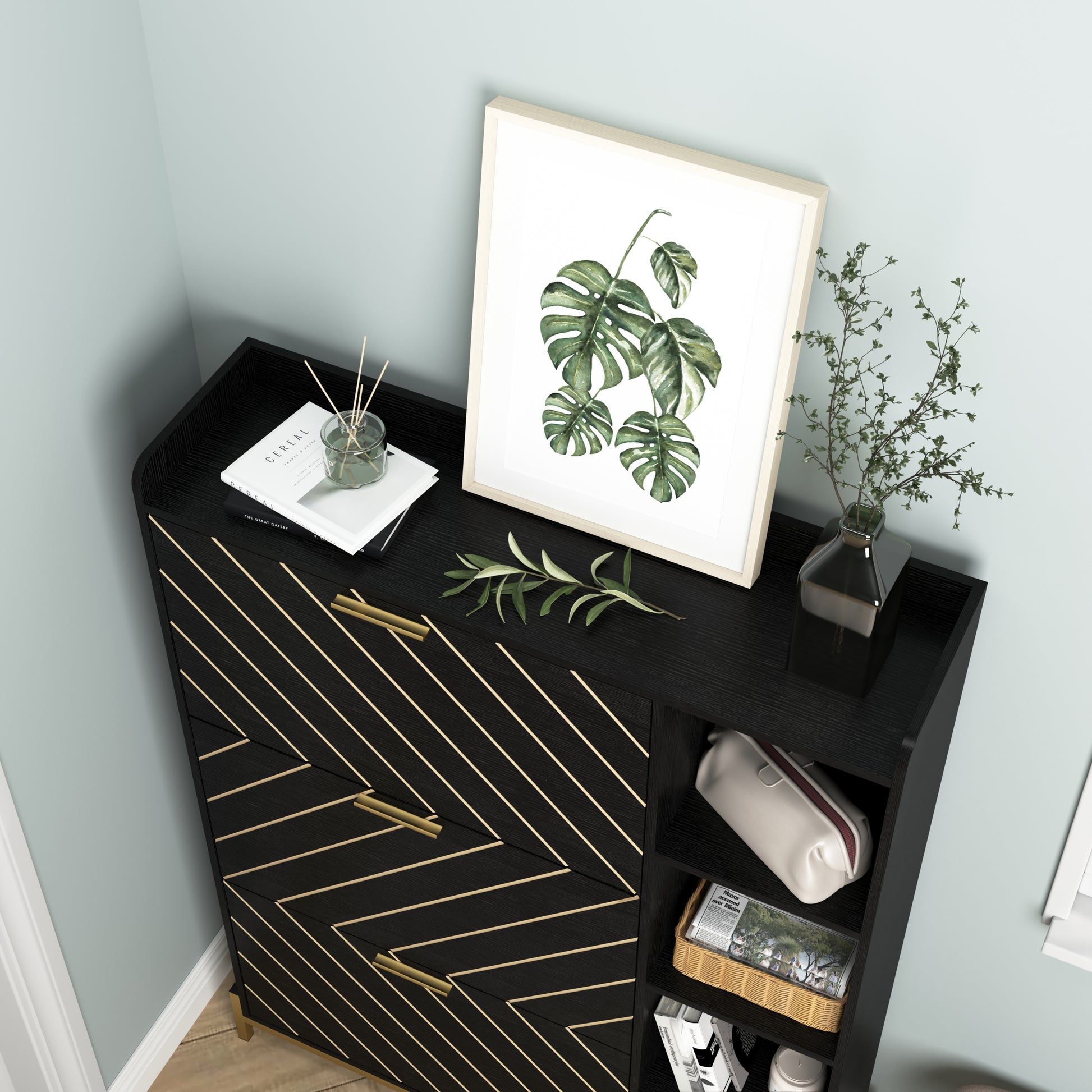 - Our freestanding shoe cabinet features space-saving flip drawers that are easy to open and close. Unlike ordinary shoe racks, this narrow cabinet can fit into small spaces, keeping your shoes dust-free and protected from pets and bugs. Enjoy a clutter-free and organized entryway with this modern shoe cabinet.