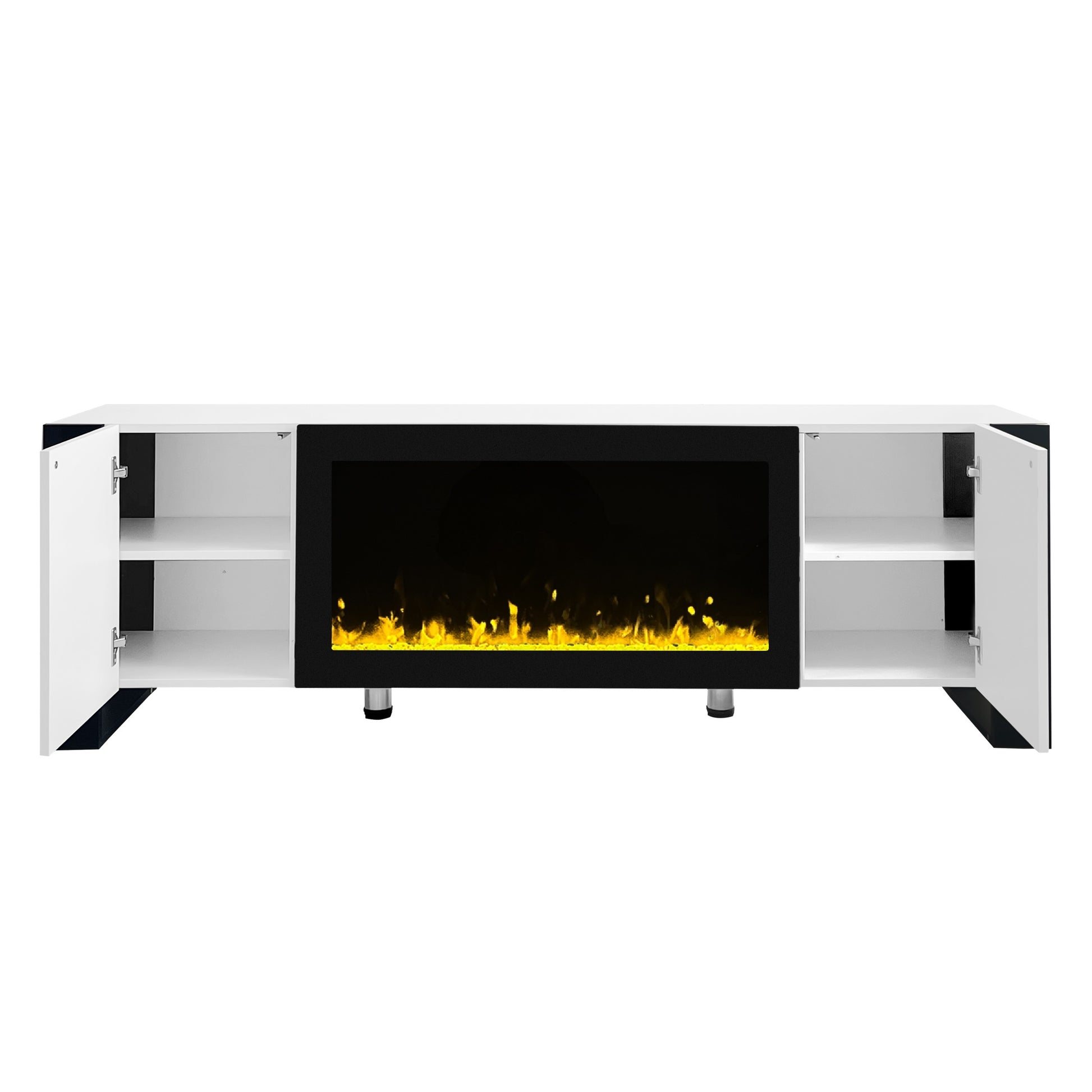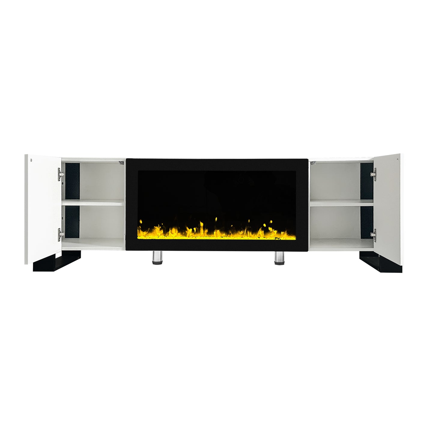 ON-TREND Modern TV Stand with 34.2' Non-heating Electric Fireplace, High Gloss Entertainment Center with 2 Cabinets, Media Console for TVs up to 78', White