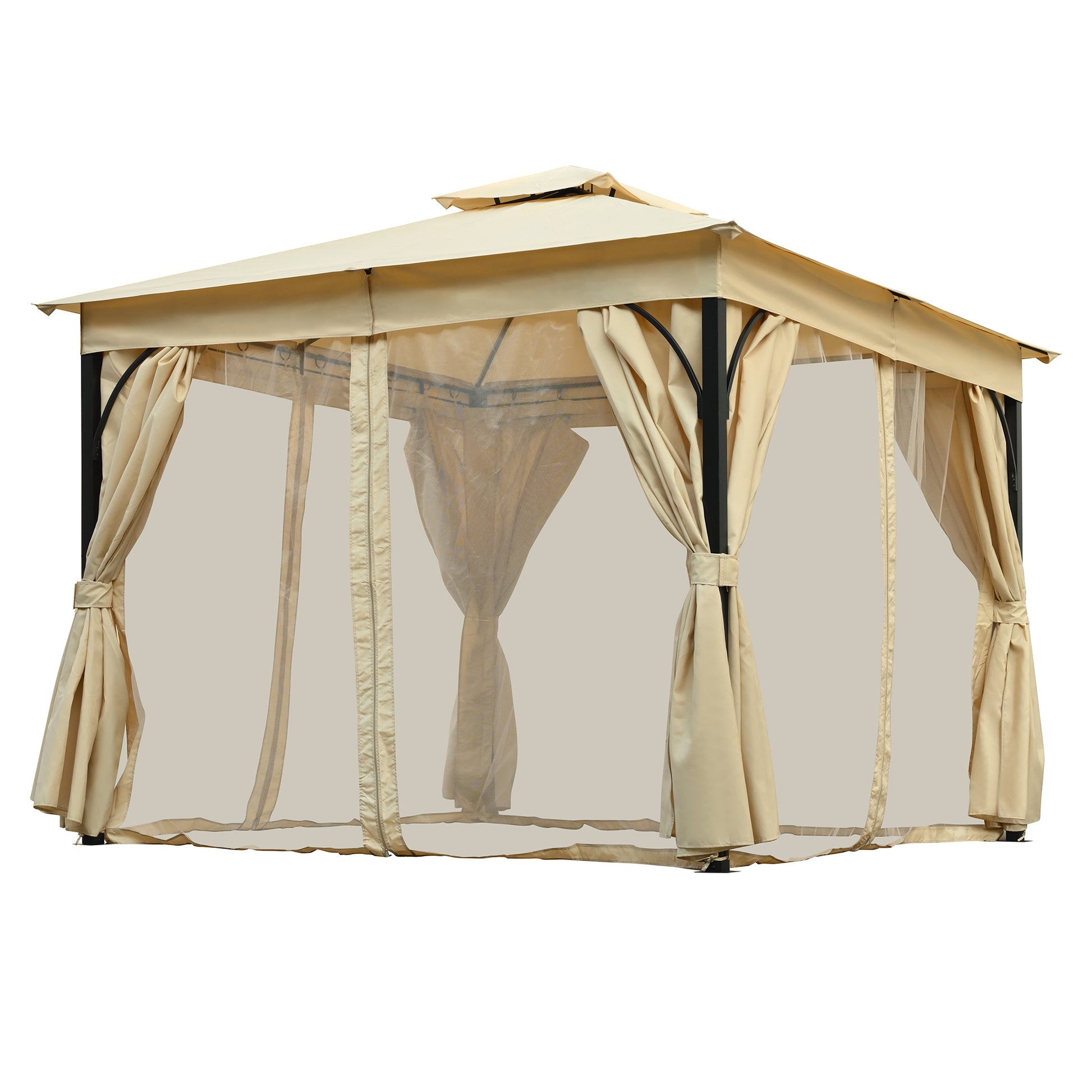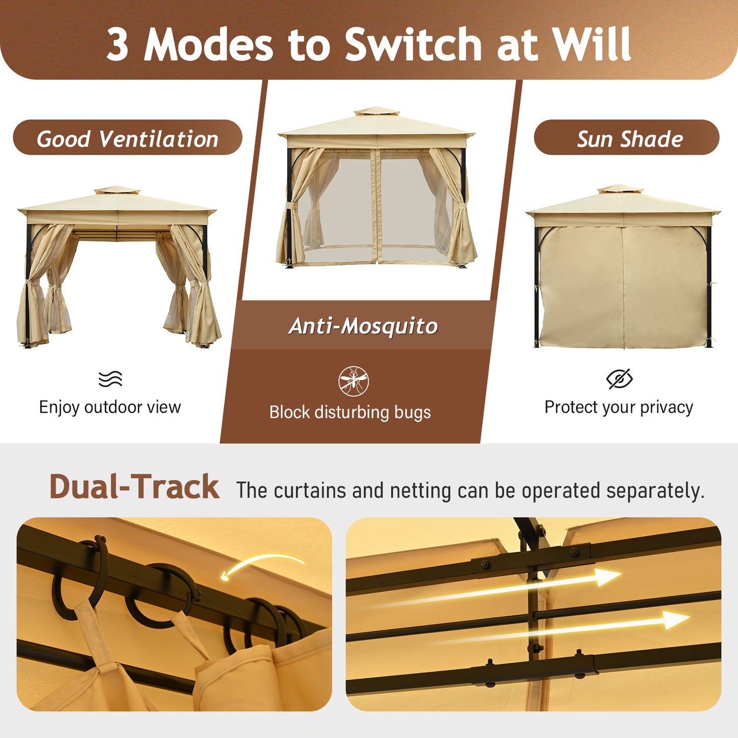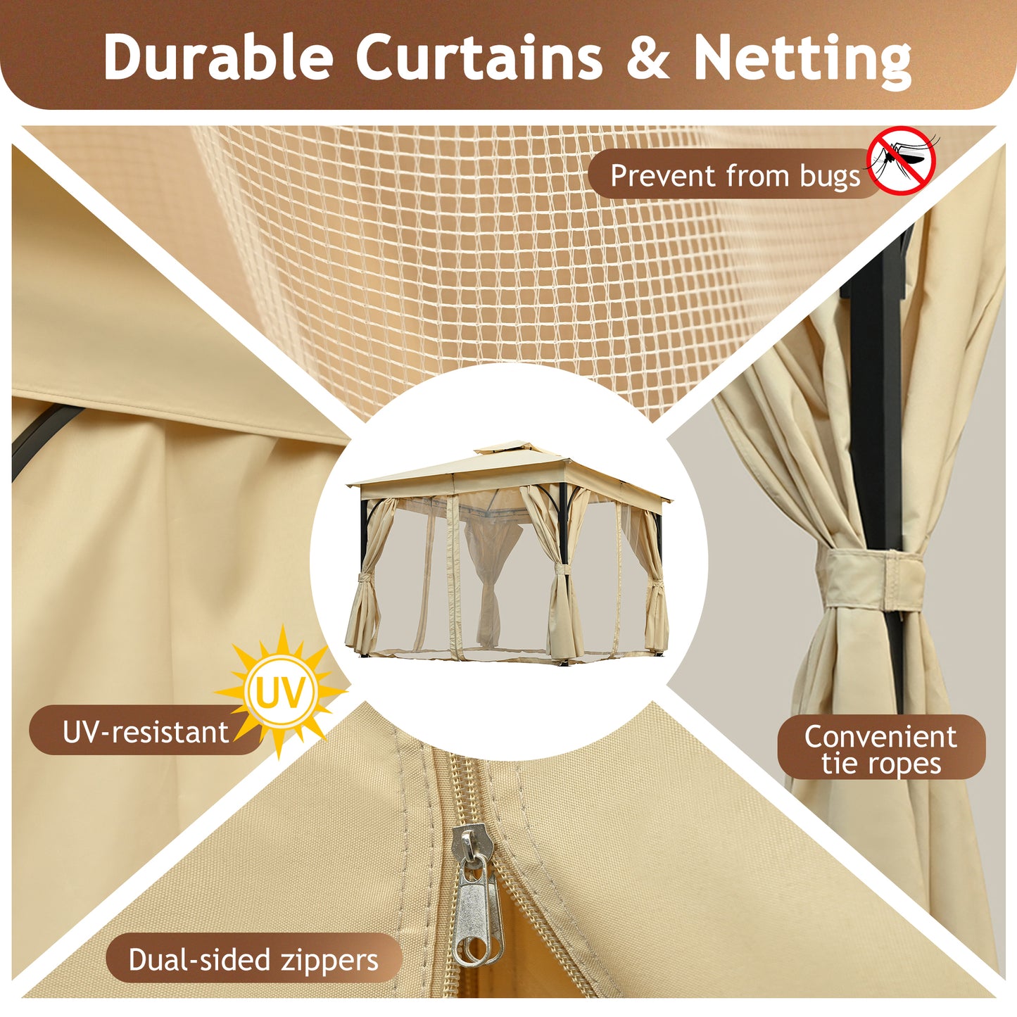 TREXM 10x10 Outdoor Gazebo Tent with Double Roofs, Patio Gazebo with Mosquito Netting and Privacy Screens, Patio Canopy for Shade and Rain for Backyard, Garden, Lawn and Deck (Beige)