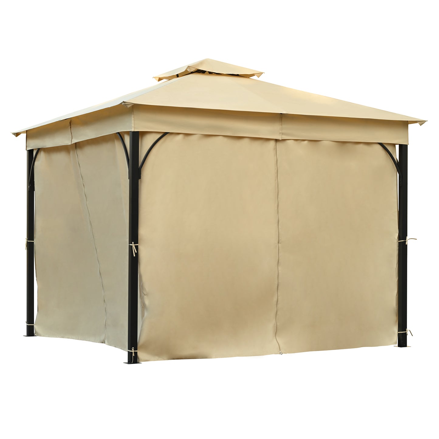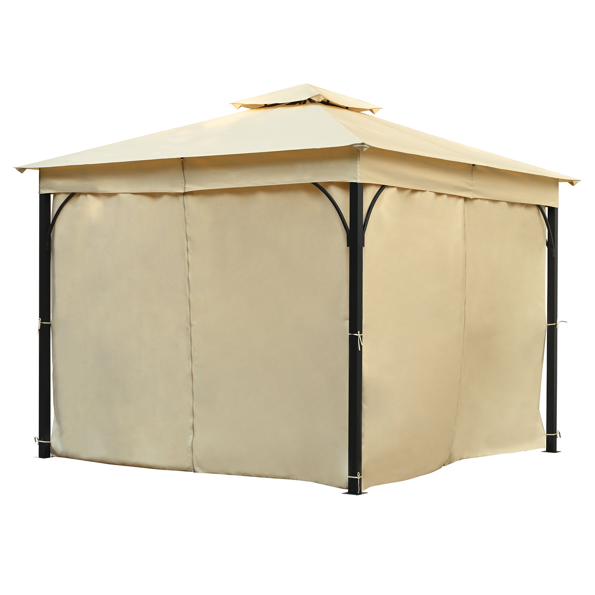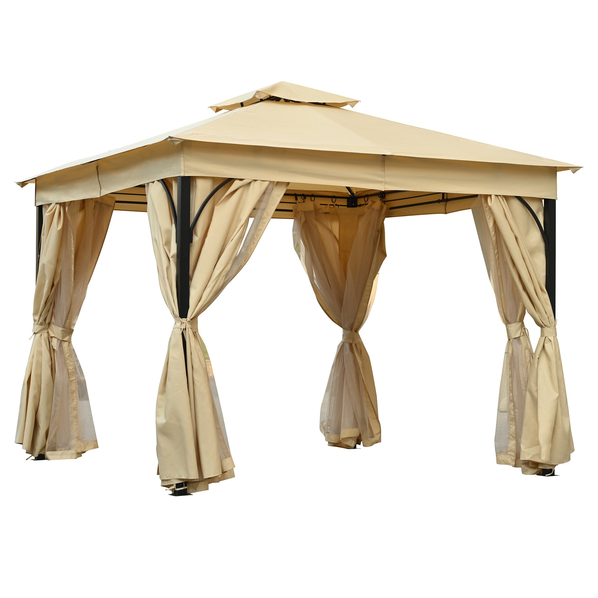 TREXM 10x10 Outdoor Gazebo Tent with Double Roofs, Patio Gazebo with Mosquito Netting and Privacy Screens, Patio Canopy for Shade and Rain for Backyard, Garden, Lawn and Deck (Beige)