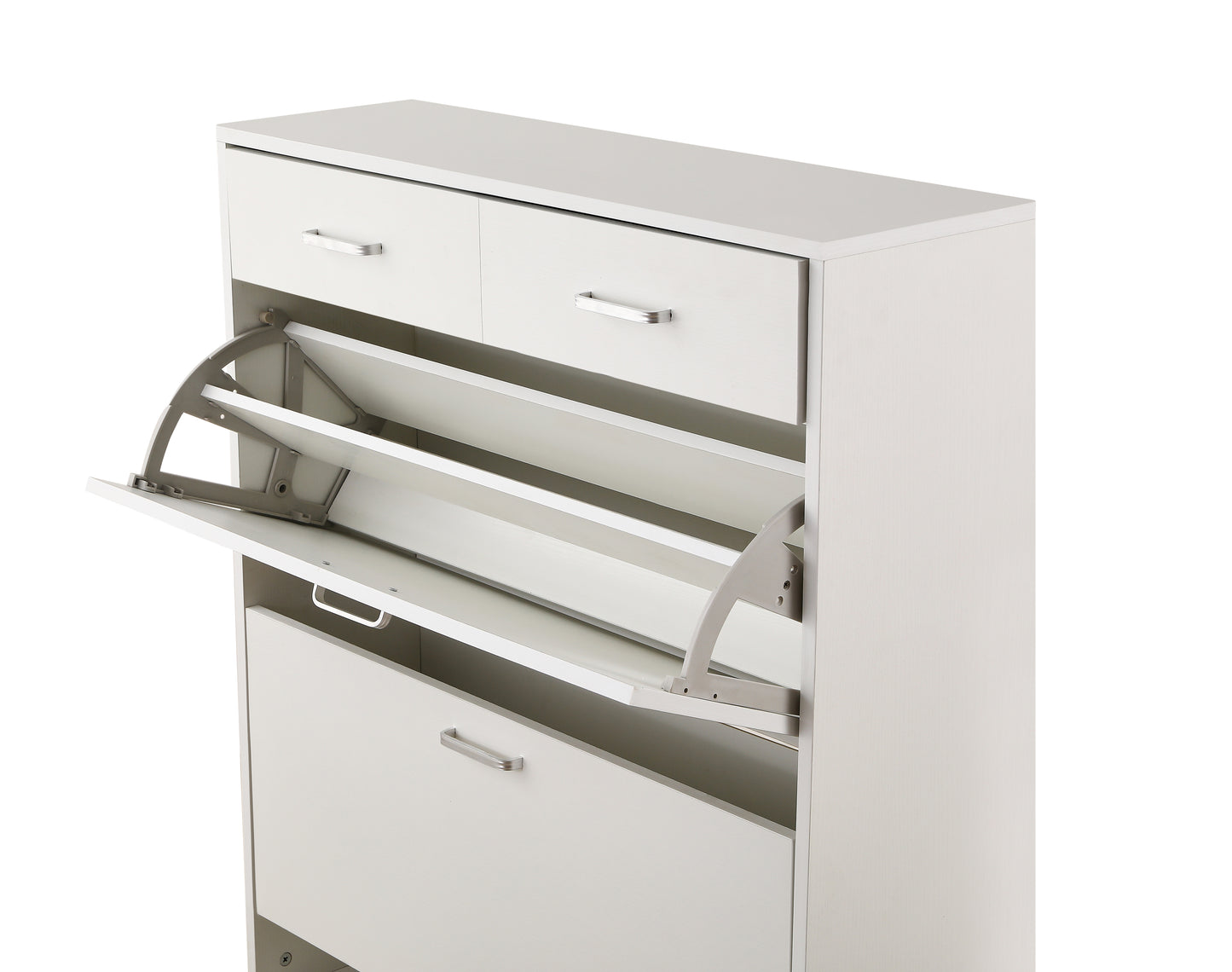 Large size Shoe Cabinet,Free Standing Tipping Bucket Shoe Rack Organizer with 2 Flip Drawers&2 Drawer,Modern Tipping Bucket for Entryway, Hallway, Bedroom-white