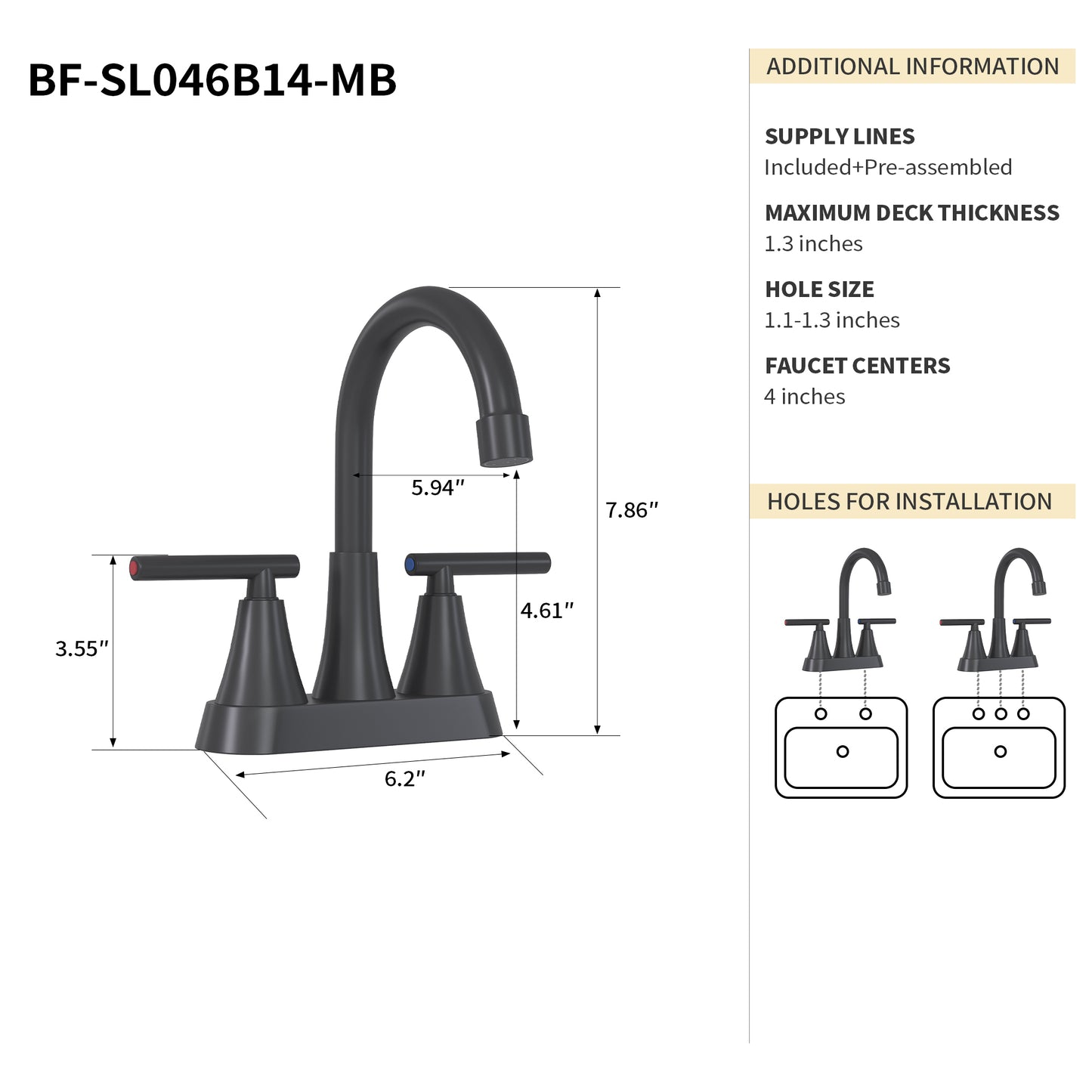 Bothwa Home 7.86' CUPC Certified 2-handle Bathroom Sink Faucet (Matt Black)
