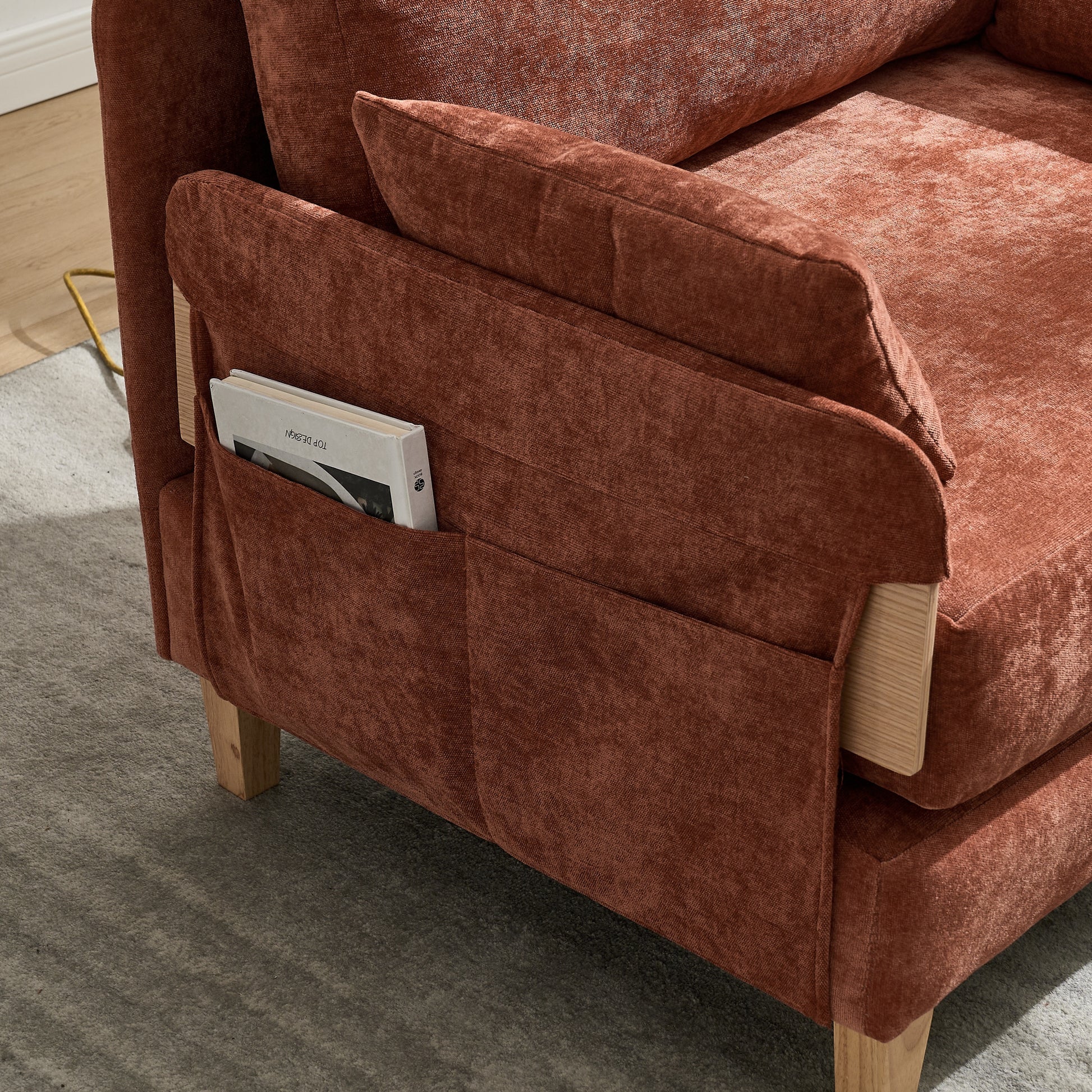 Mid-Century Modern Foldable Sofa Bed Recliner, 3-in-1 Convertible Sleeper, Orange Chenille, with Three Pillows