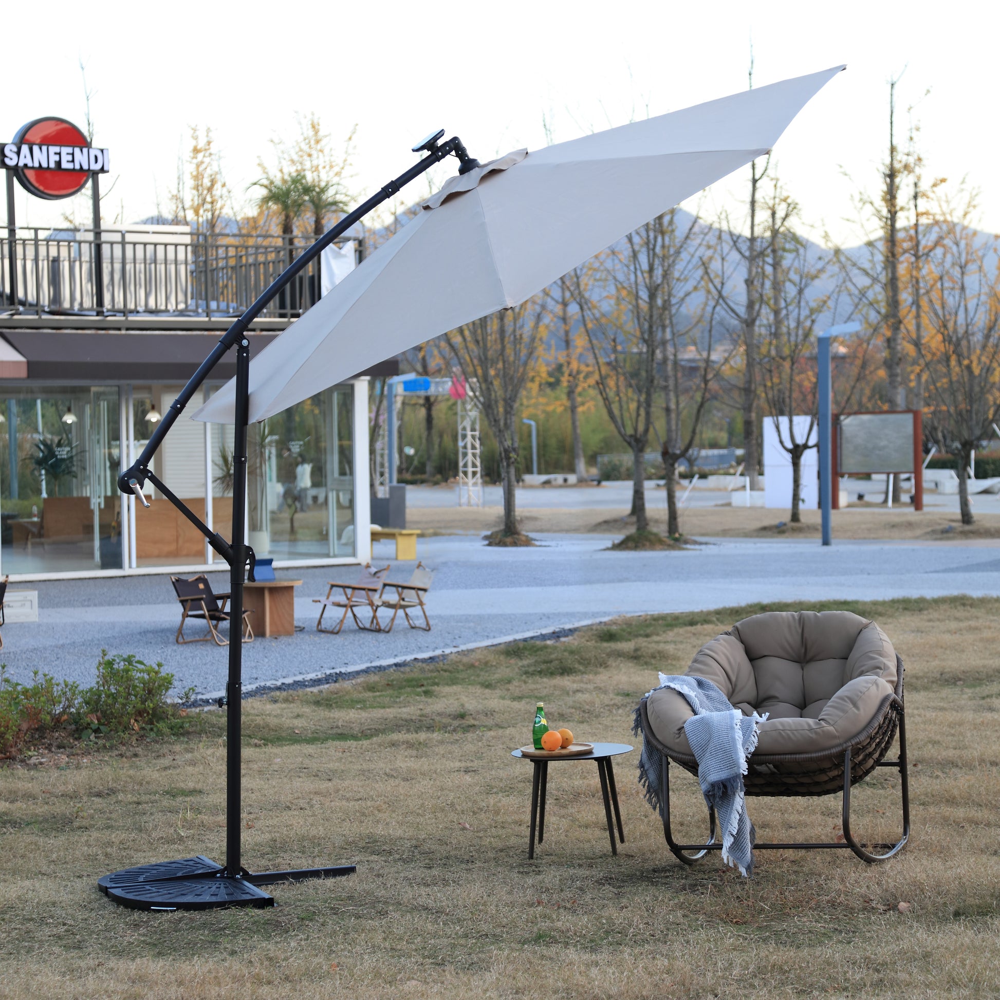 10ft Solar LED Offset Hanging Market Patio Umbrella ( khaki )(No Base)