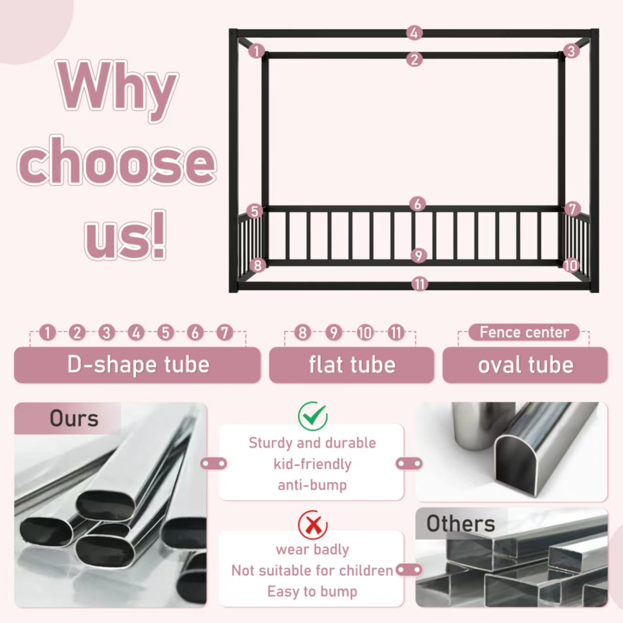 - Open Floor Bed Frame: This floor house bed frame adopts an open and low-profile design, allowing you to enter and exit easily and freely, while providing a warm and pleasant sleeping space.