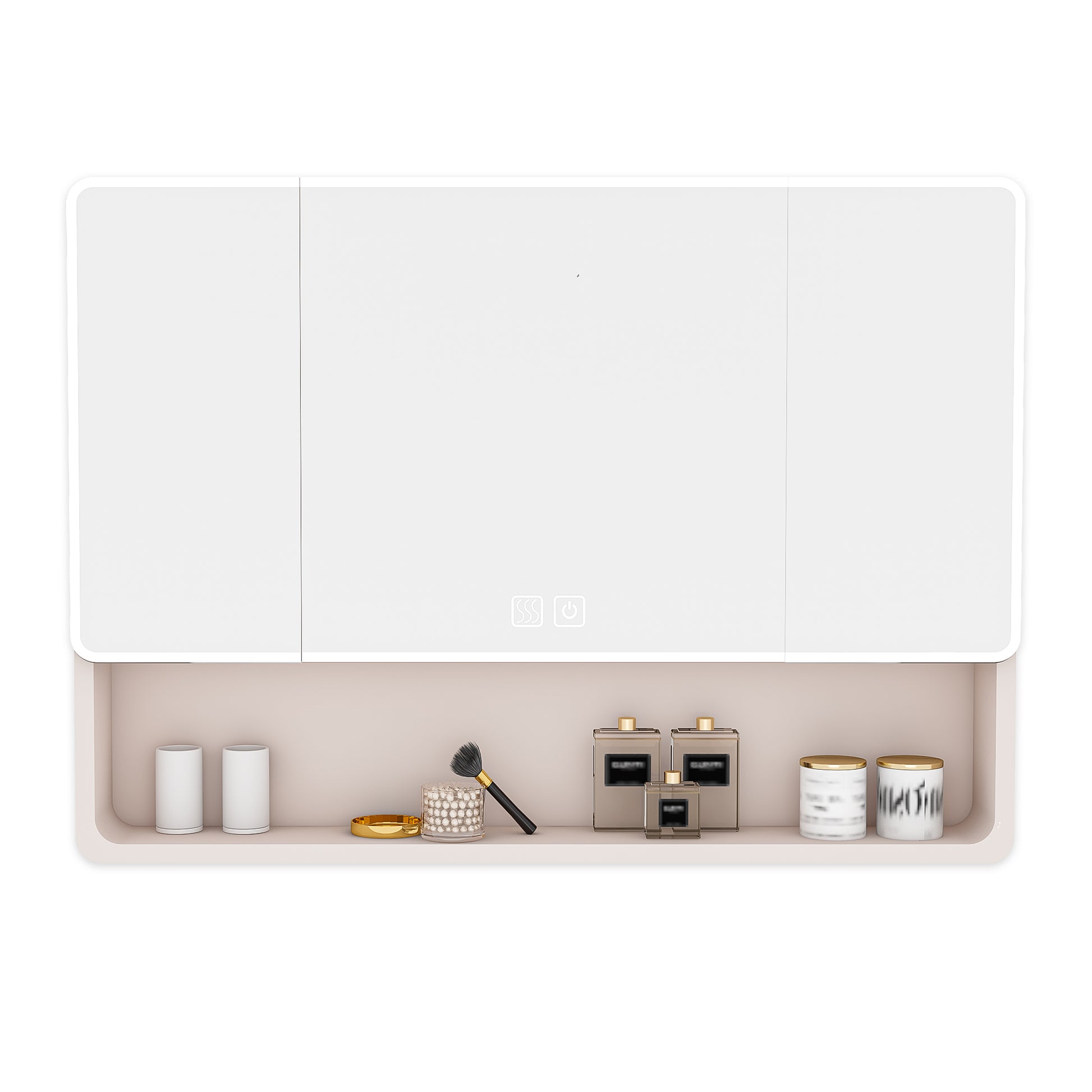 Aluminum alloy smart mirror cabinet, creating your exclusive personal space. With exquisite storage space, say no to disorganization. Categorized storage, well-organized, all taken care of by one smart mirror cabinet. The medicine cabinet combines modern technology with sleek design, offering a multitude of benefits for your bathroom. It boasts a one-touch defogging system, adjustable LED lighting for perfect makeup application, and cosmetic storage shelf on the back of the cabinet door. With ample storage space and customizable options, it's the ultimate upgrade for your morning routine, blending convenience with elegance.