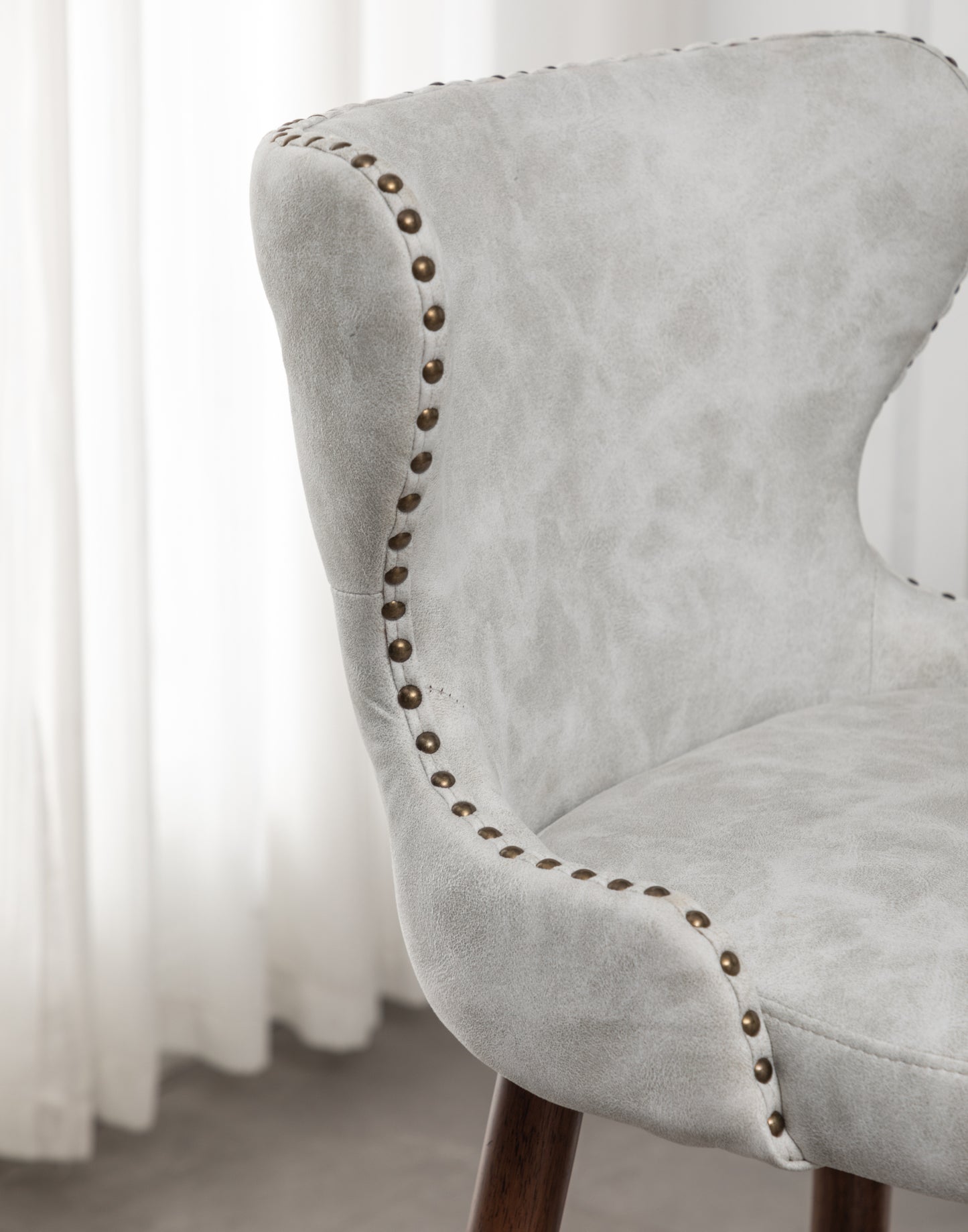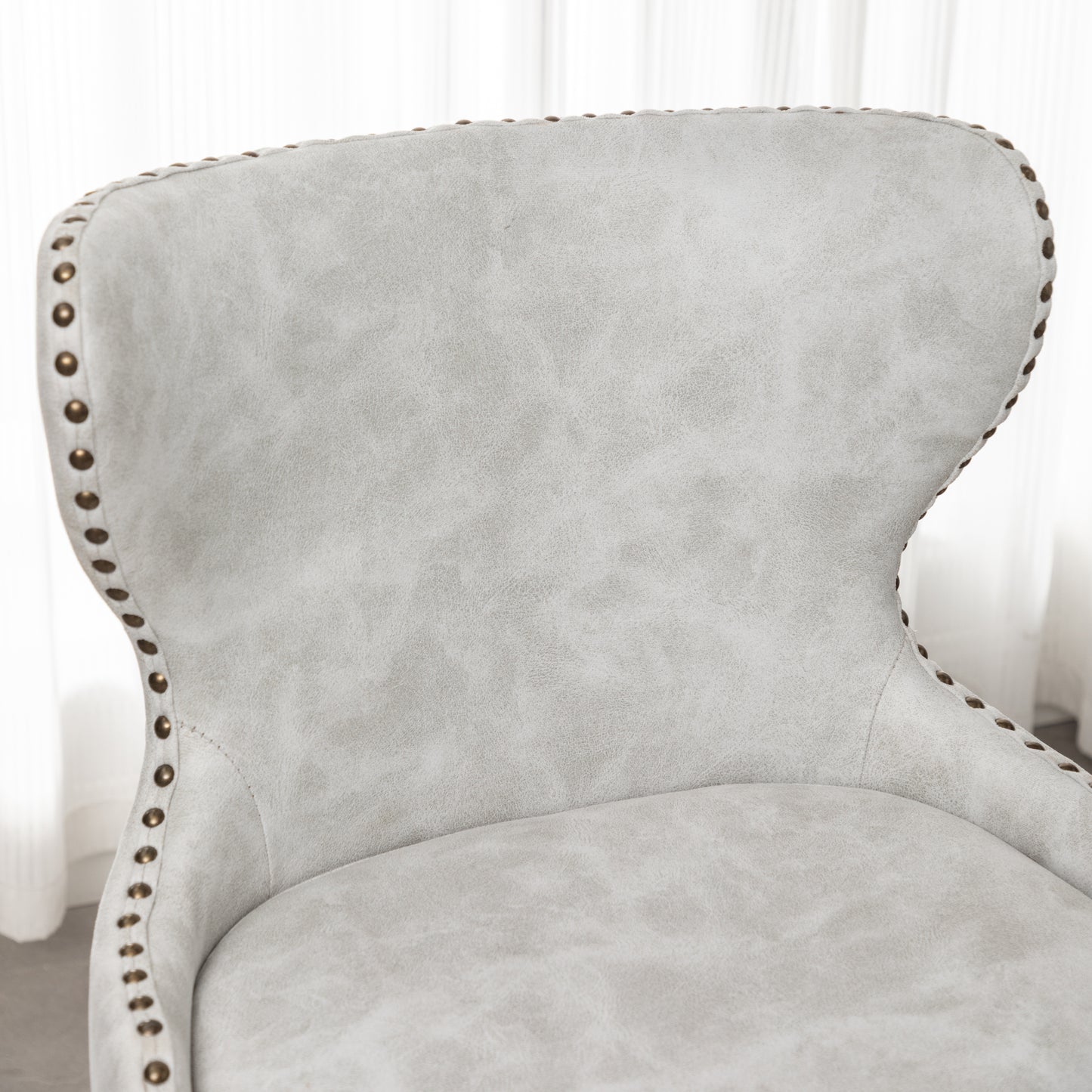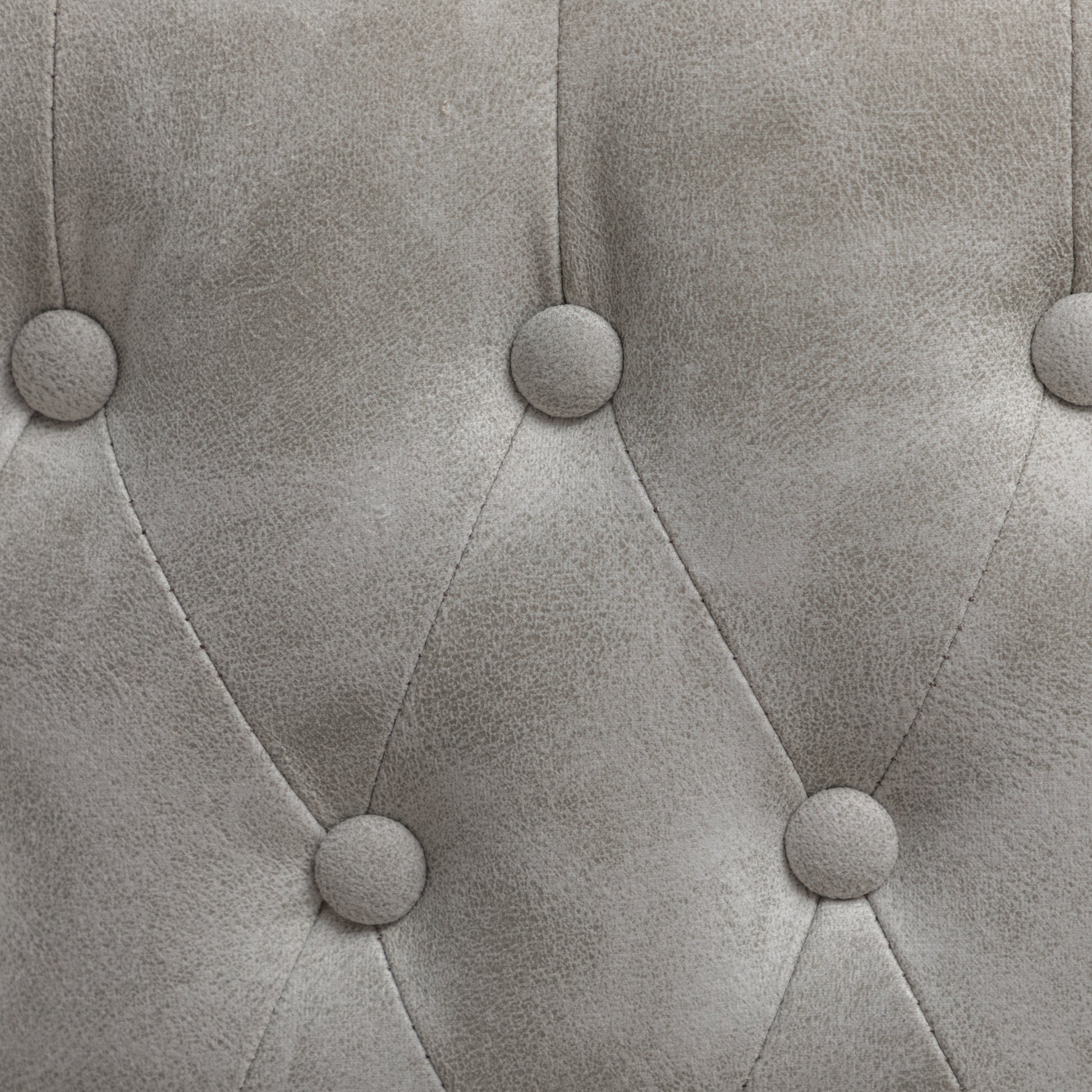 - A button tufted back and curved wing-back seat with nailhead trim bring the mid-century appeal