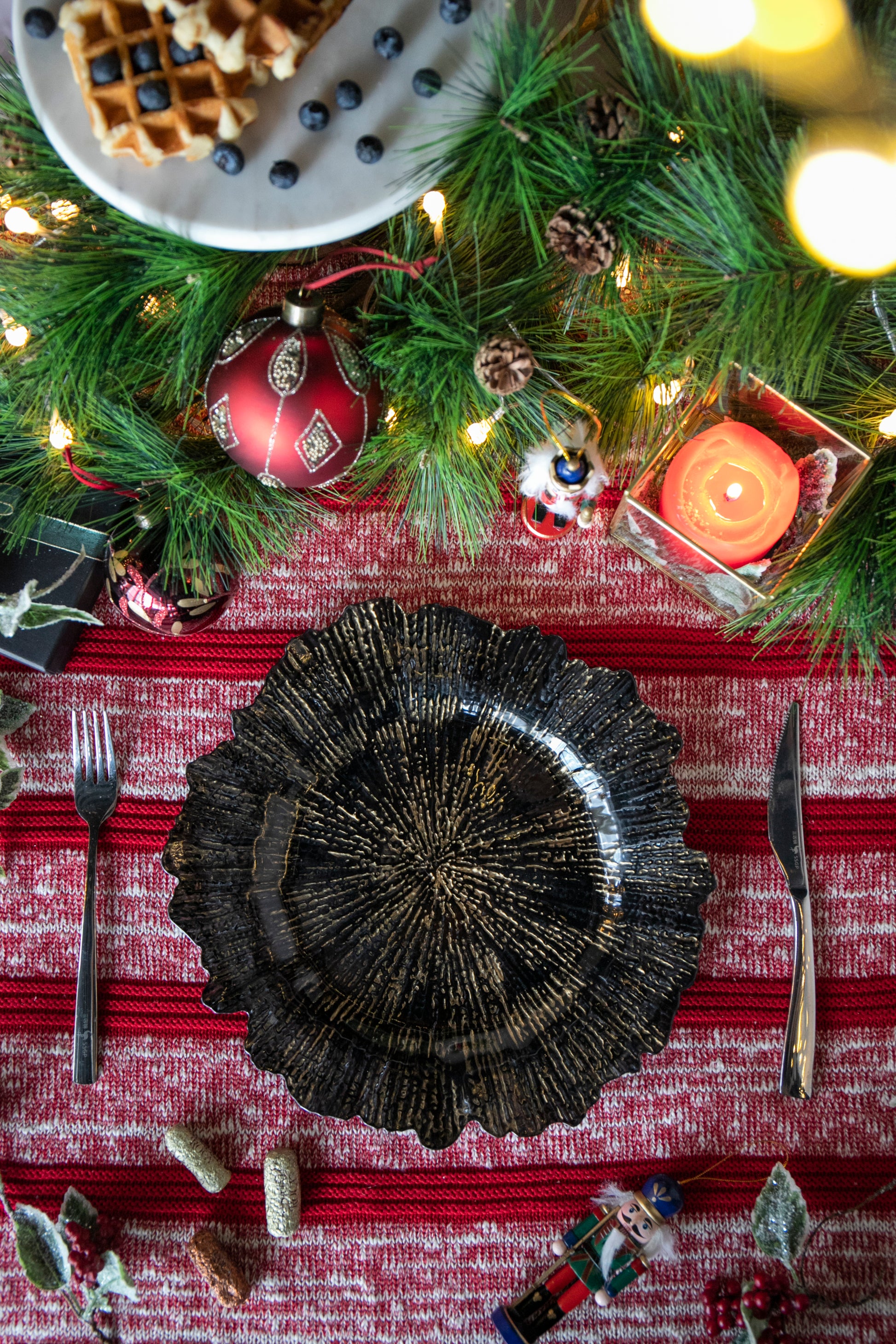 Black Chargers for Dinner Plates: premium quality medium weight plastic charger plates, elevate your dining experience with a splash of color and style.