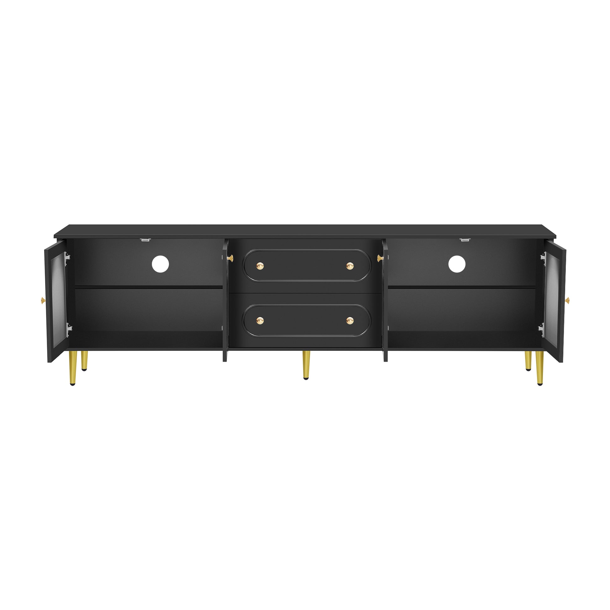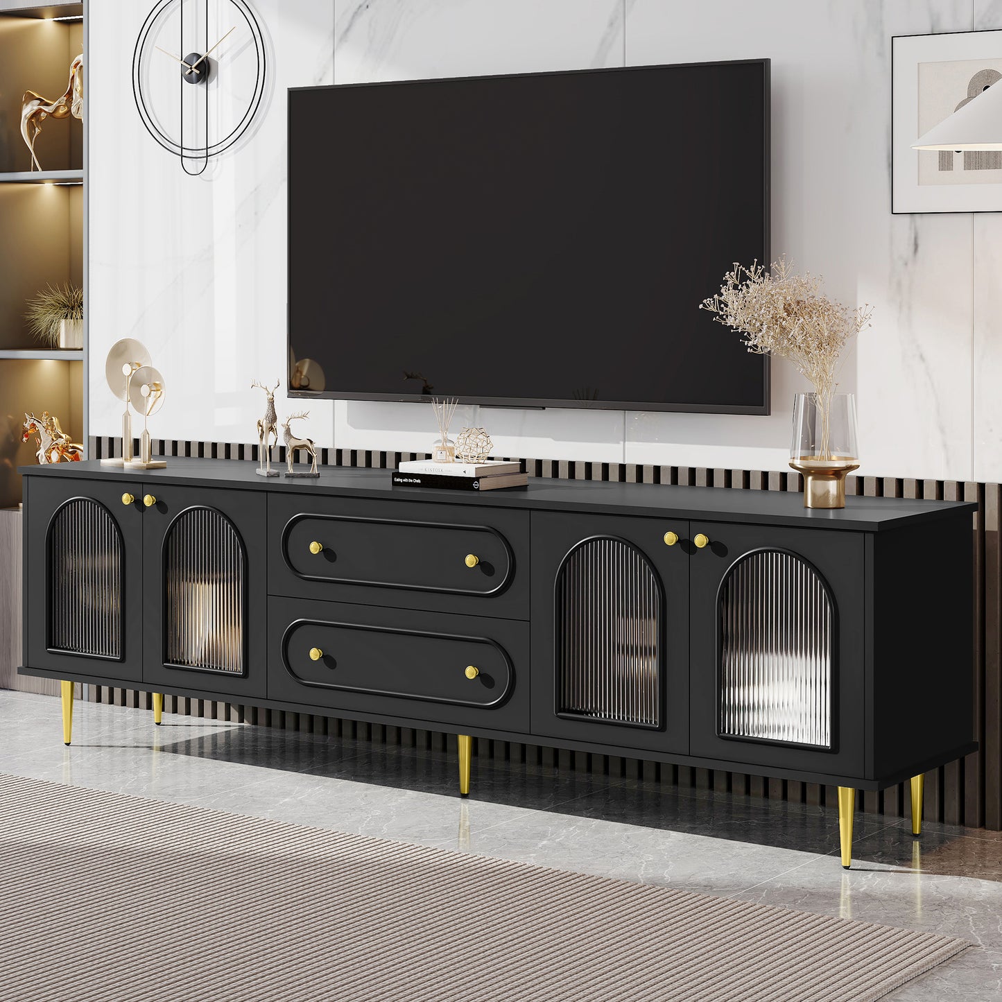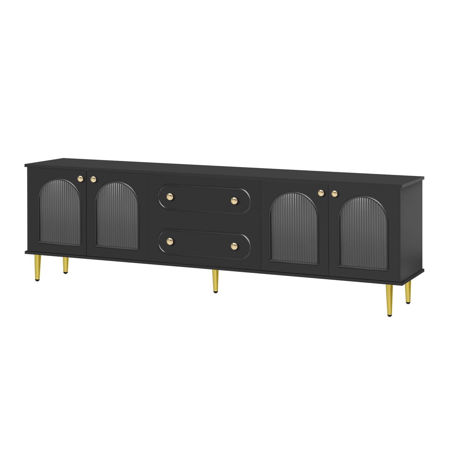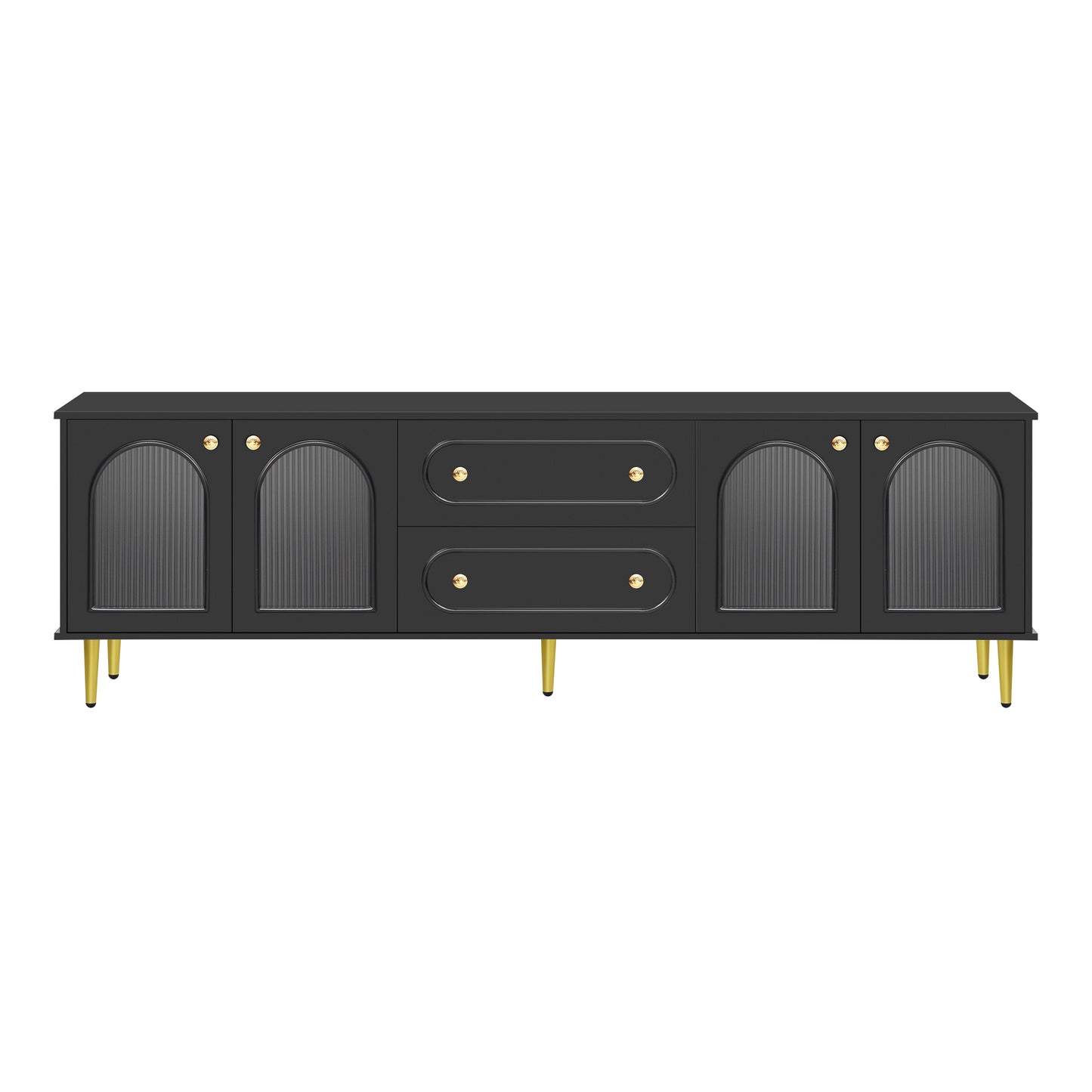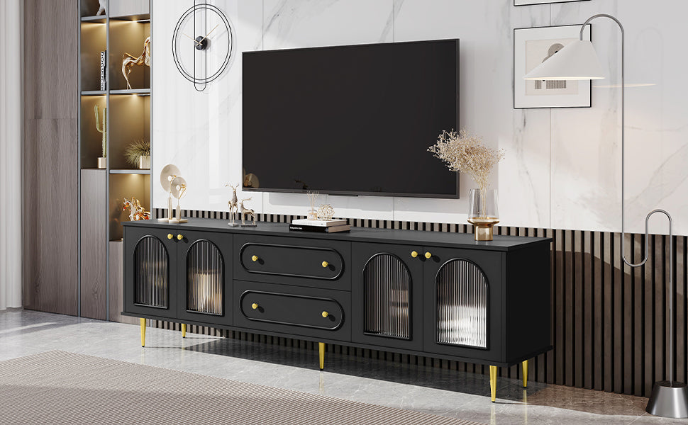 U-Can 78.7'' Modern TV Stand, TV Cabinet with Five Metal Legs and Metal Handles, 2 Drawers and 2 Cabinets with Fluted Glass Doors For Living room, Up to 80'' (Old SKU: SJ000122AAB)