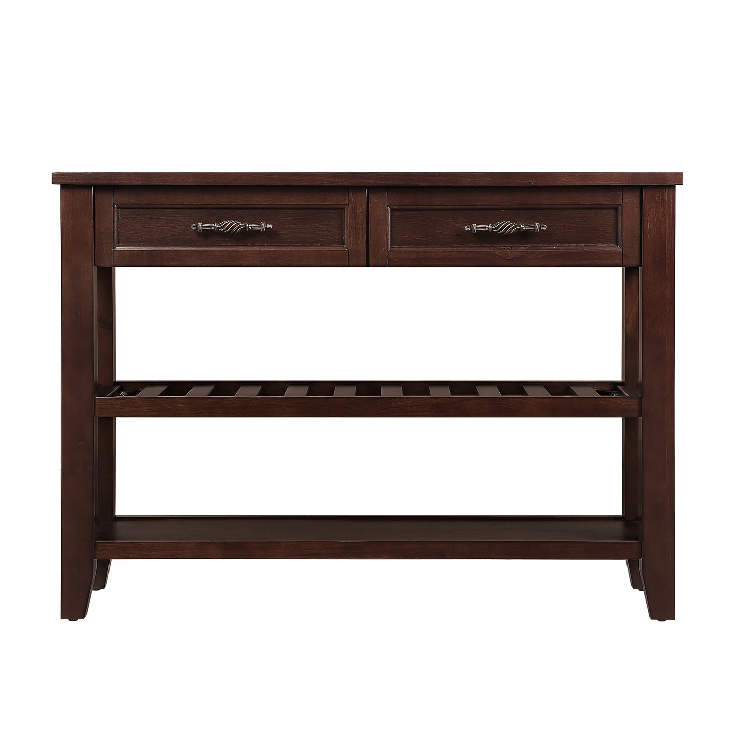 Console Sofa Table with 2 Storage Drawers and 2 Tiers Shelves, Mid-Century Style 42'' Solid Wood Buffet Sideboard for Living Room Furniture Kitchen Dining Room Entryway Hallway, Espresso