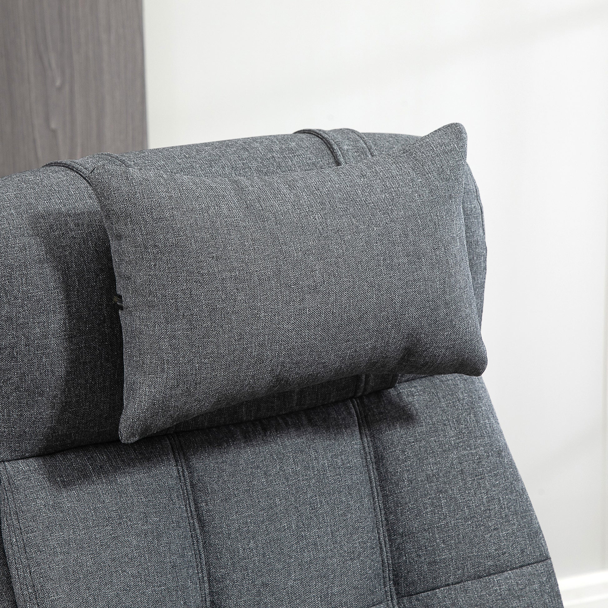 Executive Linen-Feel Fabric Office Chair High Back Swivel Task Chair with Adjustable Height Upholstered Retractable Footrest, Headrest and Padded Armrest, Dark Grey