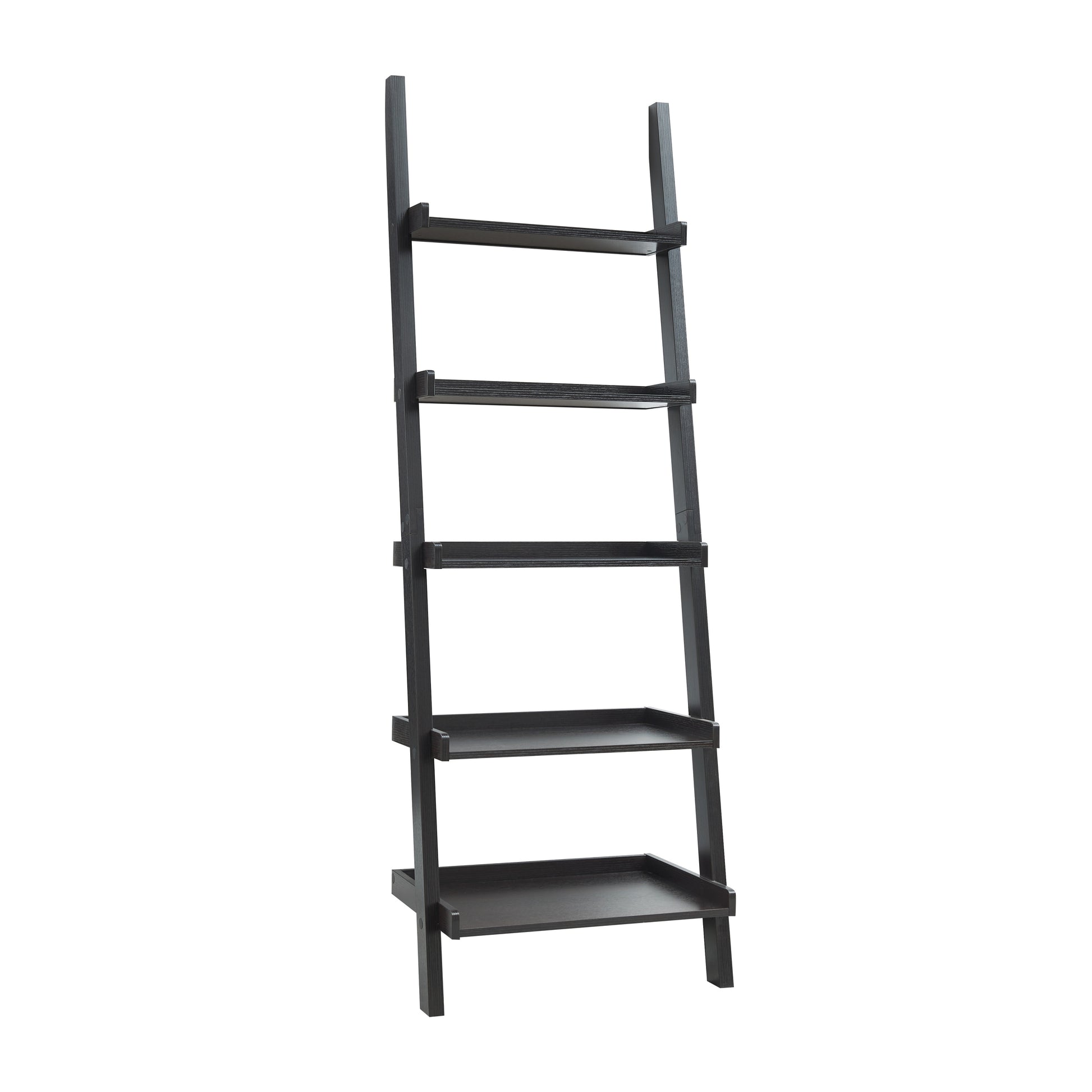 This popular designed ladder bookcase features five shelves with wrap around molding to prevent items from falling off. Each shelf has a different depth size that is pleasing and interesting to the eye. Display small knick knacks and larger books to accentuate your living room wall.