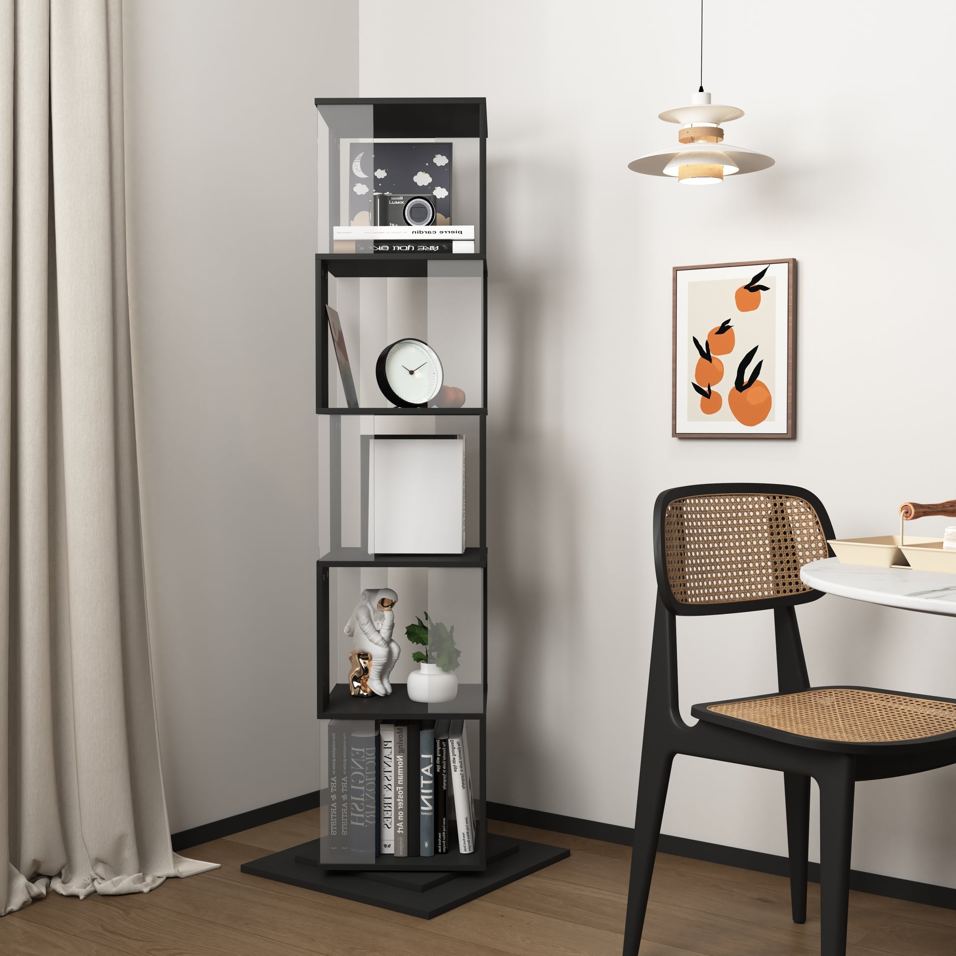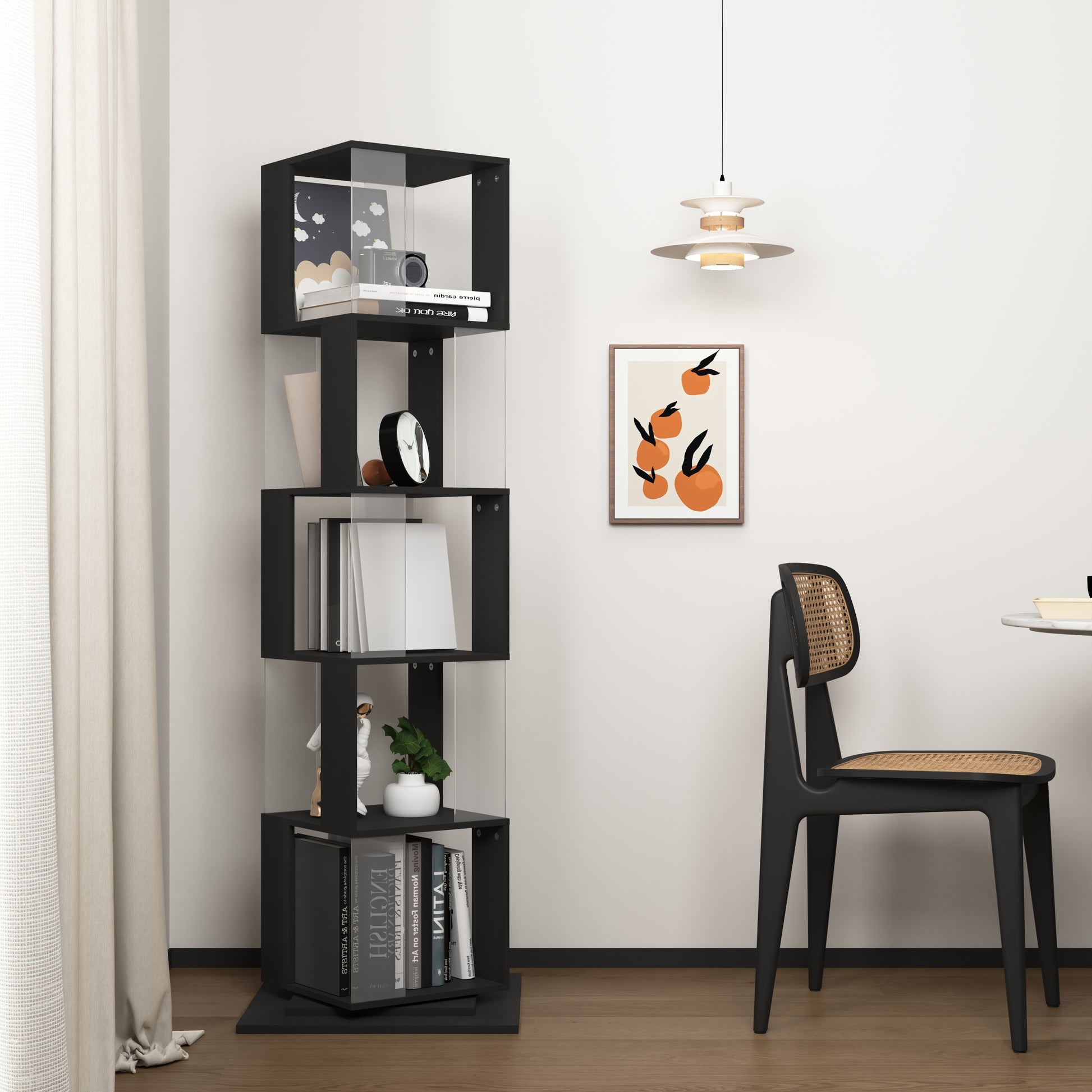 5 tier Rotating Bookshelf, Floor Rack Simple Bookcase with Acrylic plate Student Multi-Function Creative Bookshelf for Living Room with anti-toppling base