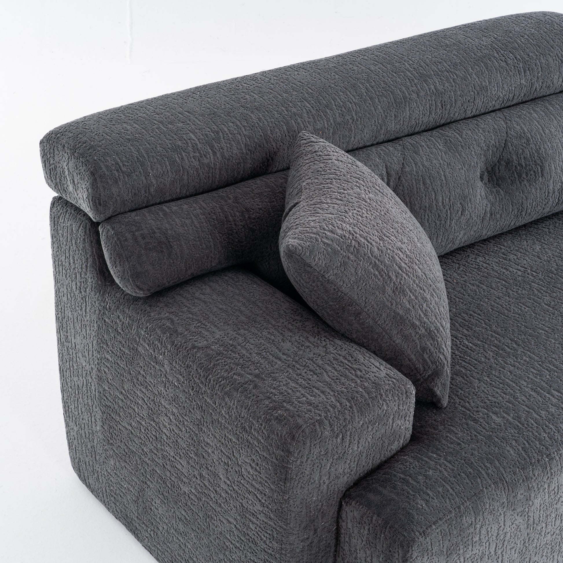 LY-029 GRAY COMPRESSION SOFA: 4-seater combined sofa, Wood Grain Chenille fabric, full sponge compression sofa,combined sofa with 2 pillows for living/ Home Furniture/ Apartment