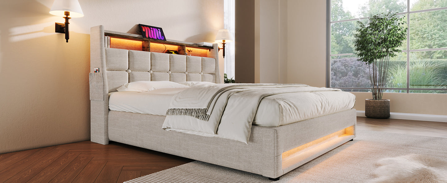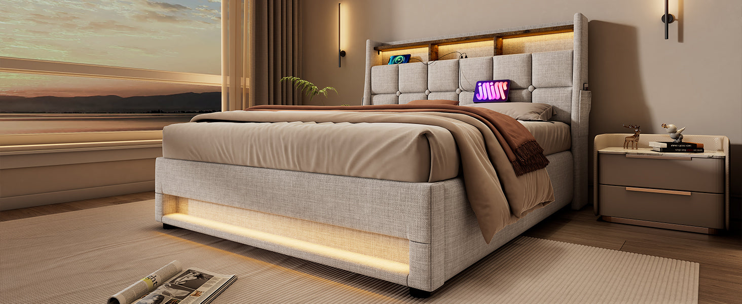 - Colorful LED Lighting: LED lighting at the head and foot of the bed adds modern style to your bedroom, and the remote control lets you change the different colors and brightness for a comfortable night's sleep.