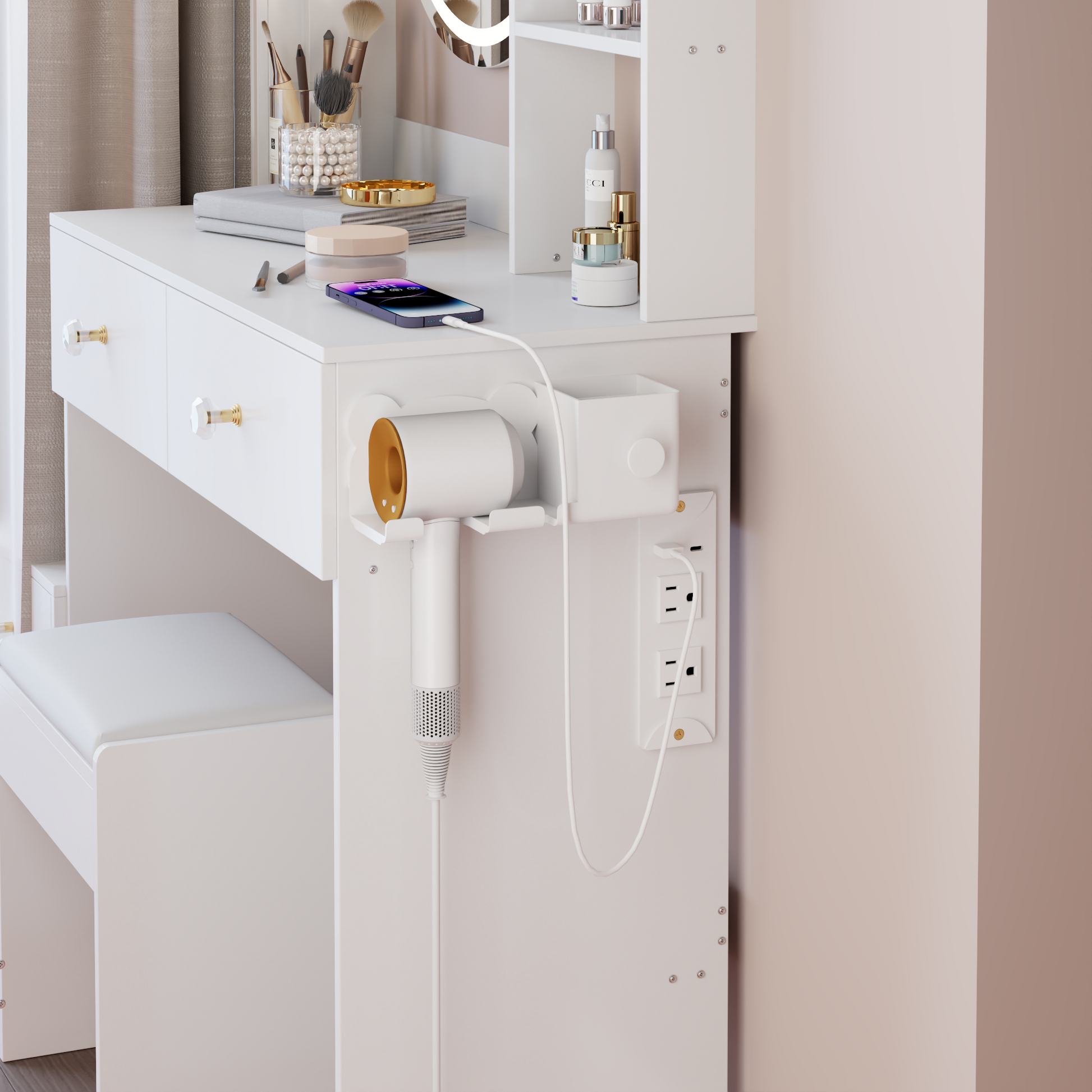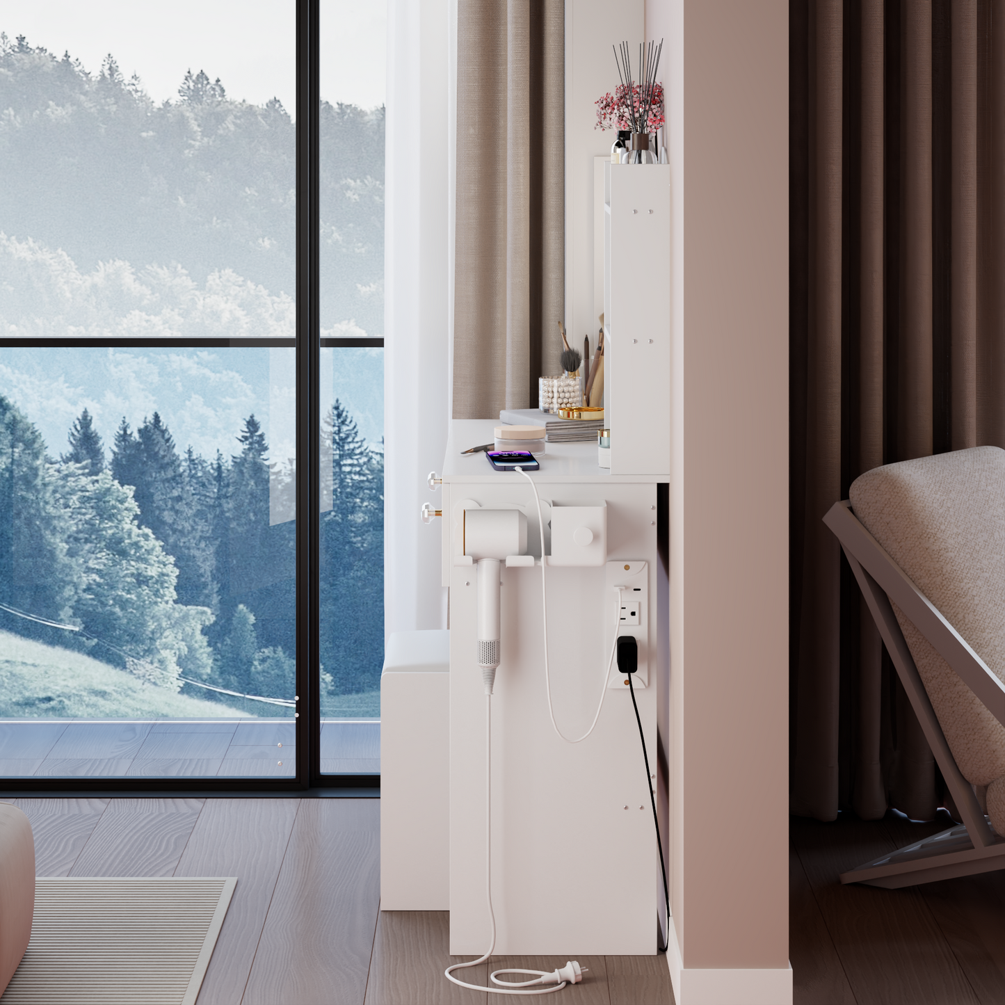- [Built in 2 AC power ports, 1 USB port, and 1 TYPE C fast charging port]: Equipped with a built-in socket, including 2 AC power ports, 1 USB port, and 1 TPYE C fast charging port, it can easily charge your mobile phone or tablet. Two AC power ports allow you to use curling iron and hair dryer simultaneously while you make up.
