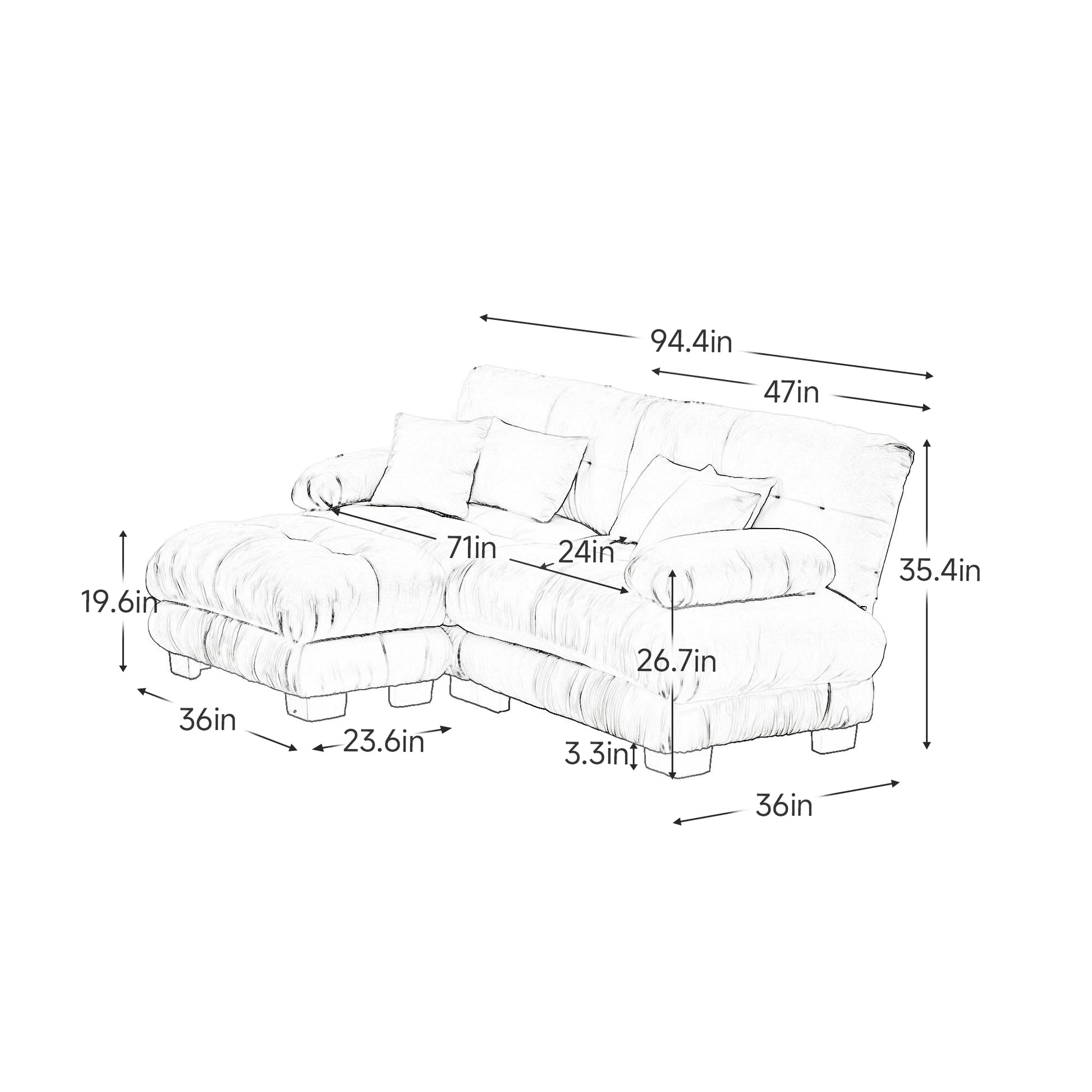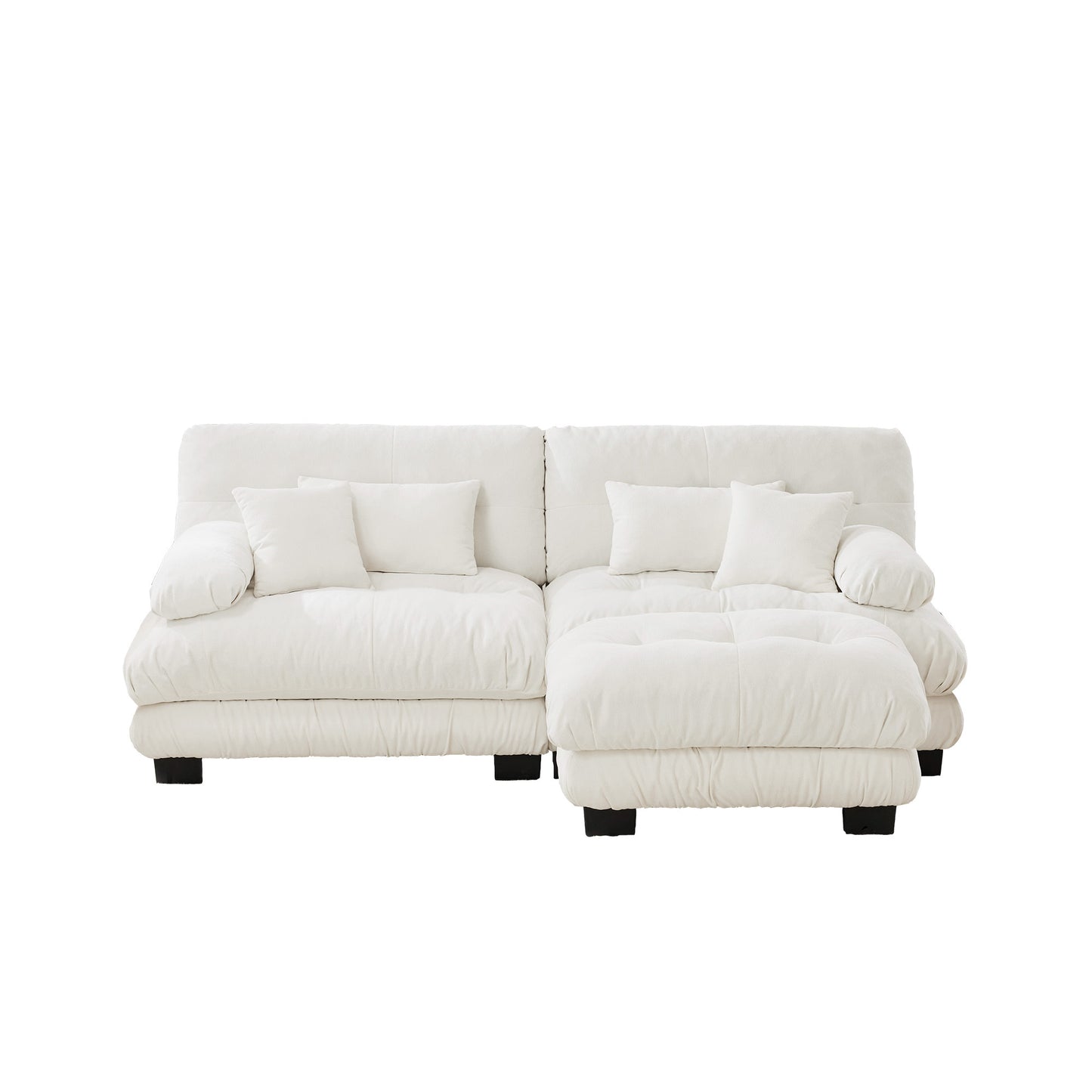 Cloud Couch Sectional Sofa for Living Room, Chenille 2 Seater Sofa with 2 Lumbar pillows and 2 throw pillows , Upholstered Wide Arm Sofa with Convertible Ottoman,Chenille White