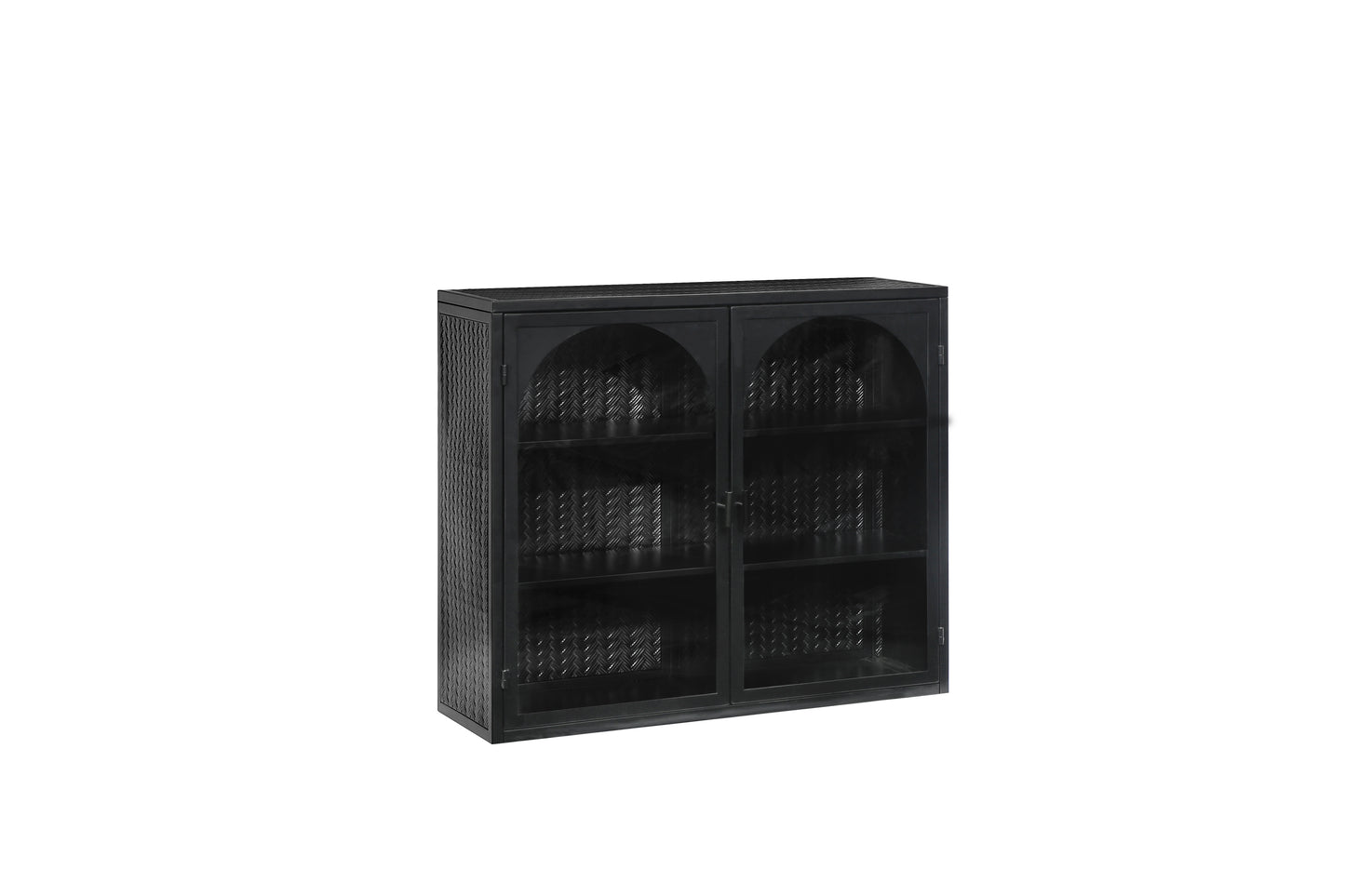 27.56'Glass Doors Modern Two-door Wall Cabinet with Featuring Three-tier Storage for Entryway Living Room Bathroom Dining Room,Wall Cabinet with Characteristic Woven Pattern,Black