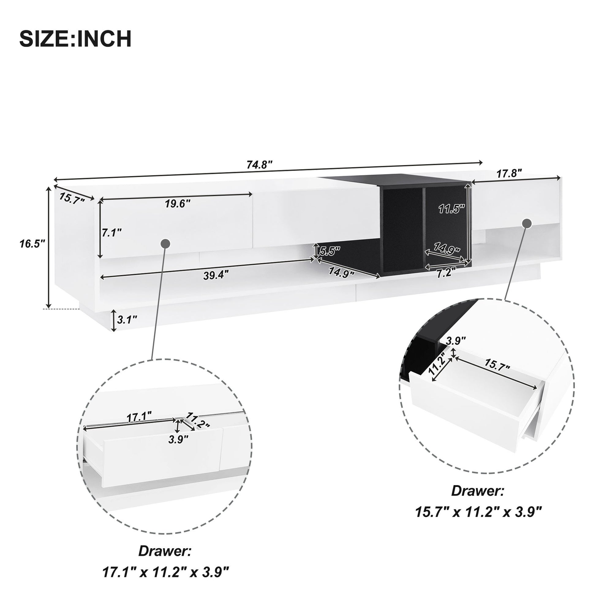 | Detailed Measurement | Overall: 74.8''W x 15.7''D x 16.5''H / Right Side Drawer: 15.7''W x 11.2''D x 3.9''H / Left Side Drawer: 17.1''W x 11.2''D x 3.9''H |