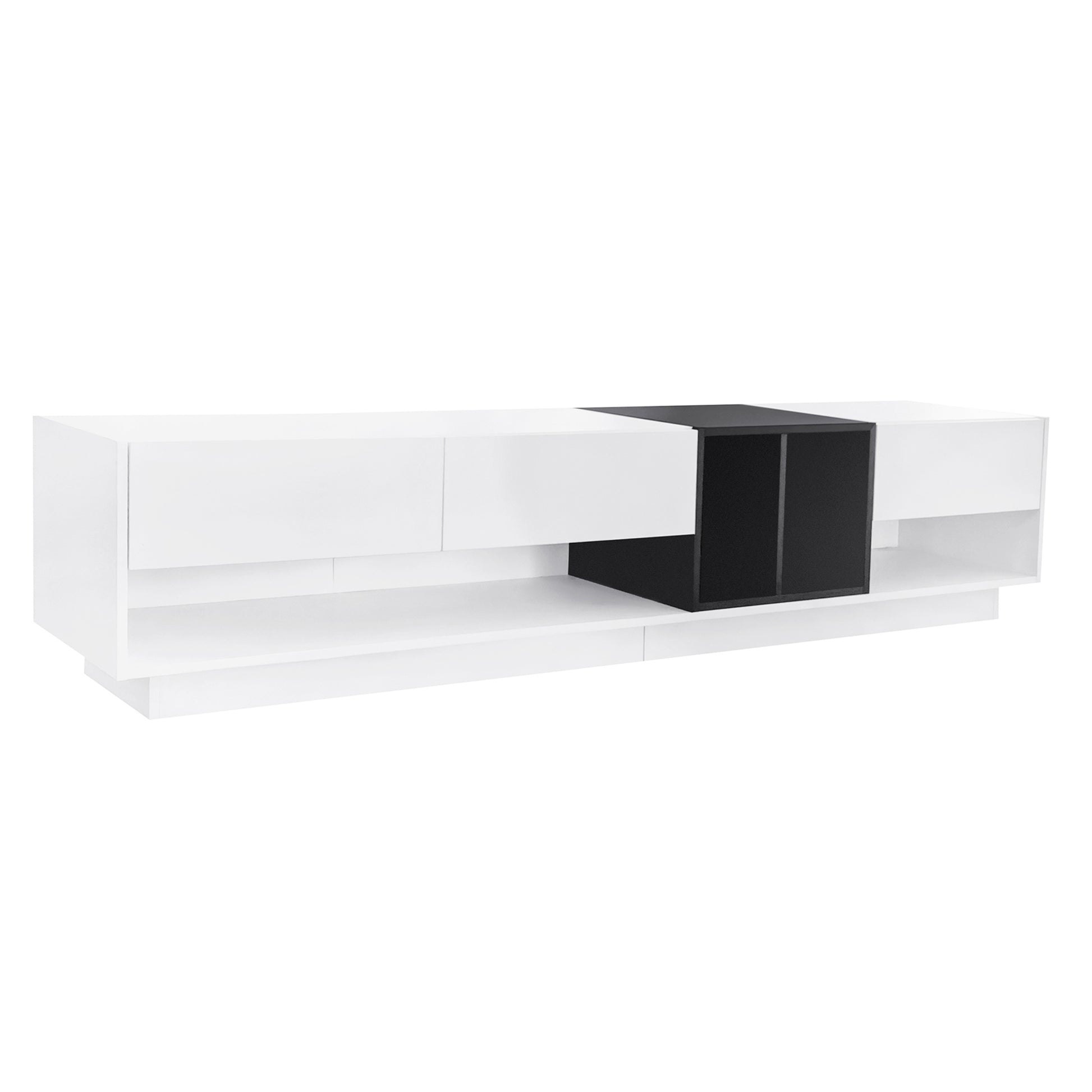 ON-TREND Sleek and Stylish TV Stand with Perfect Storage Solution, Two-tone Media Console for TVs Up to 80'', Functional TV Cabinet with Versatile Compartment for Living Room, White