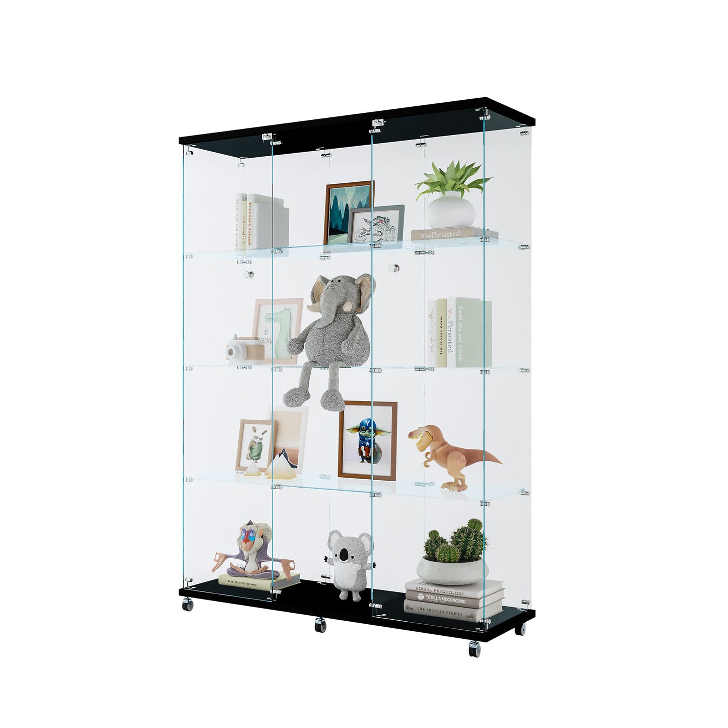 Glass Display Cabinet with 4 Shelves Extra Large, Curio Cabinets for Living Room, Bedroom, Office, Black Floor Standing Glass Bookshelf, Quick Installation