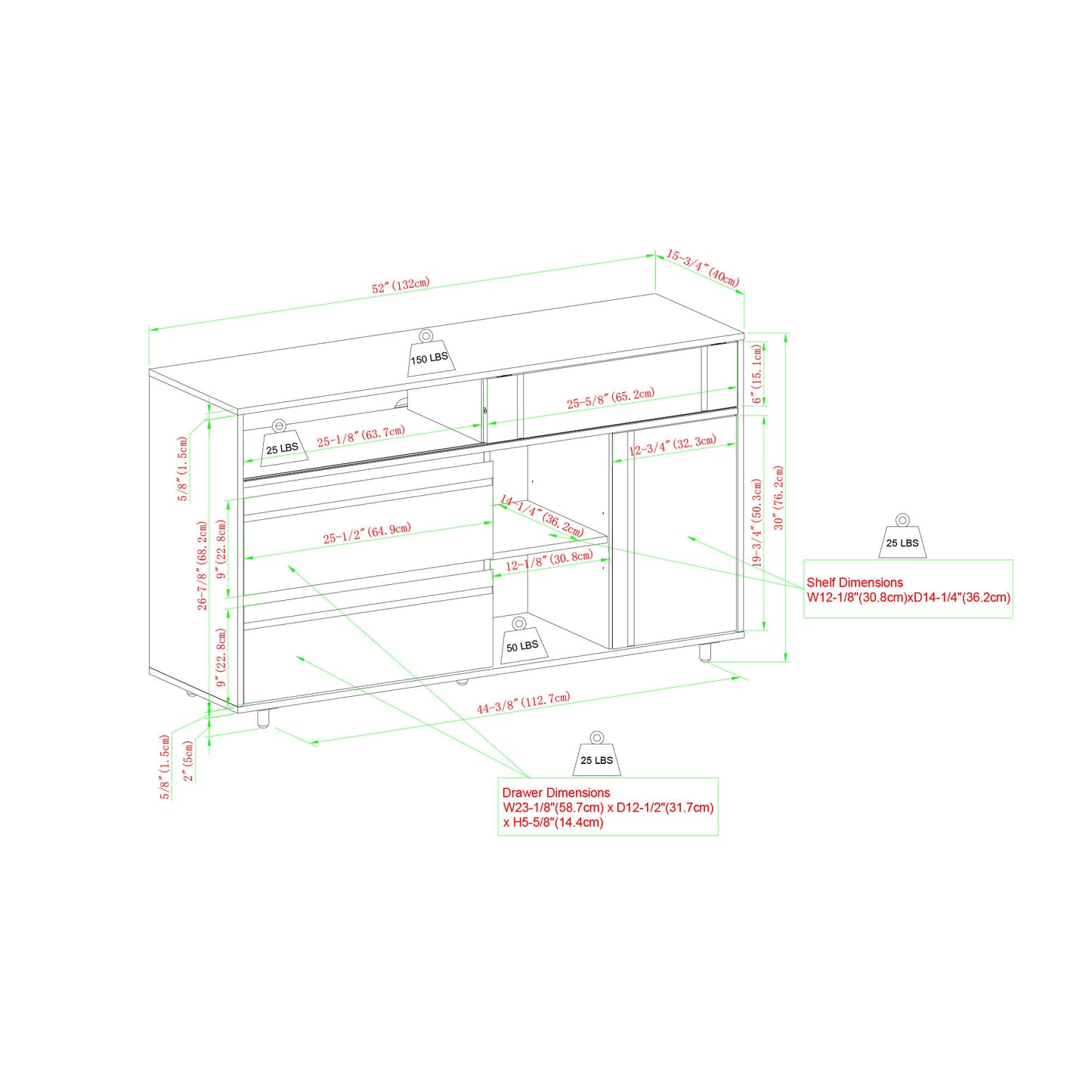 - Use as a sideboard, credenza, or TV stand