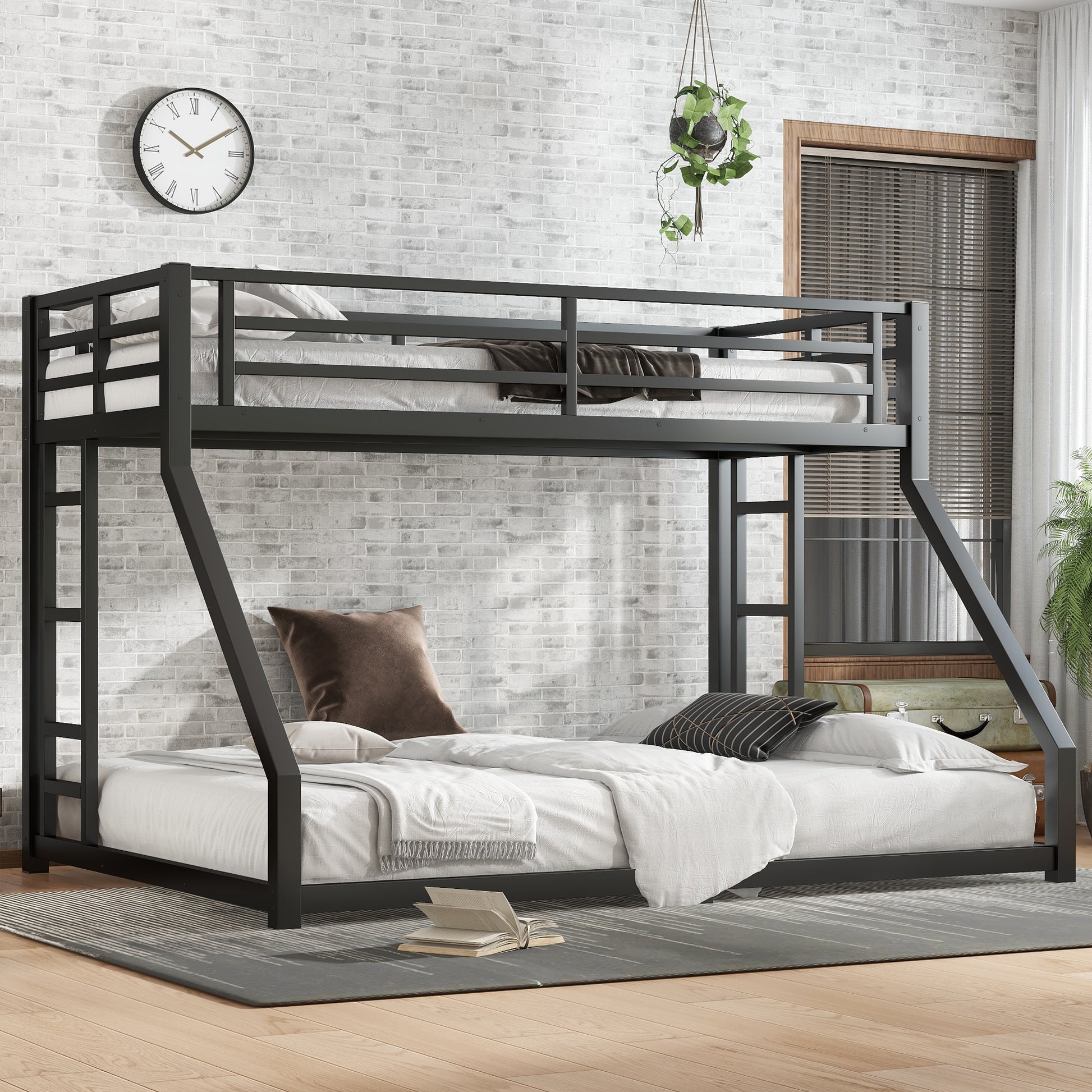 Metal Twin XL over Queen Bunk Bed for Teens and Adults,Noise Reduced/No Box Spring Needed, Black