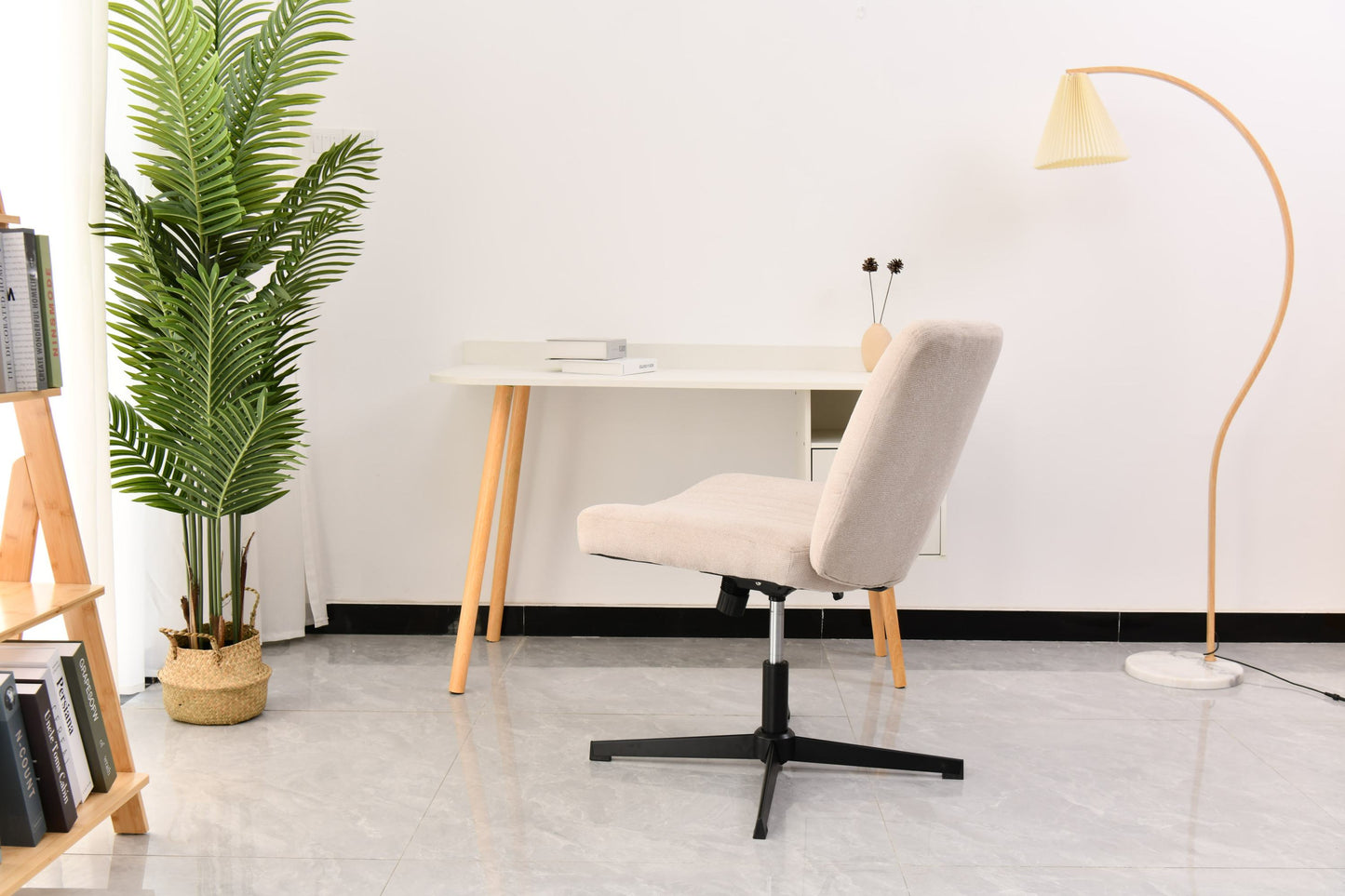 Cross Legged Office Chair, Wide Comfty Desk Chair, Fabric Vanity Home Chair No Wheels Armless Computer Task Chair, Swivel and Height Adjustable