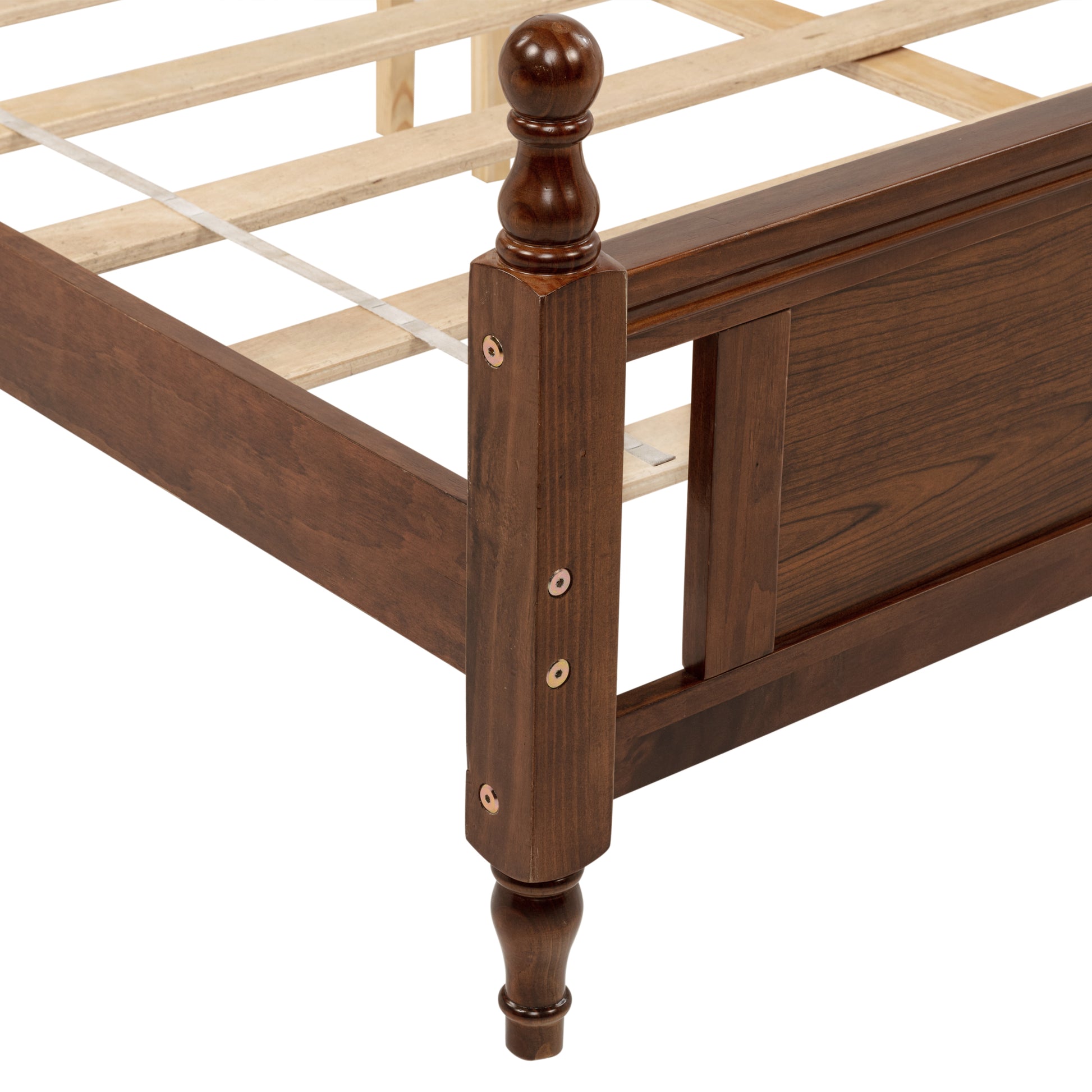 - [Elegant Headboard] This bed equipped with sophisticated and elegant headboard filled with comfortable foam, and adorned with finials on the bed posts exude a serene and classic, vintage aesthetic. It harmoniously blends into any setting, offering a rustic, minimalist appeal ideal for various decor styles.