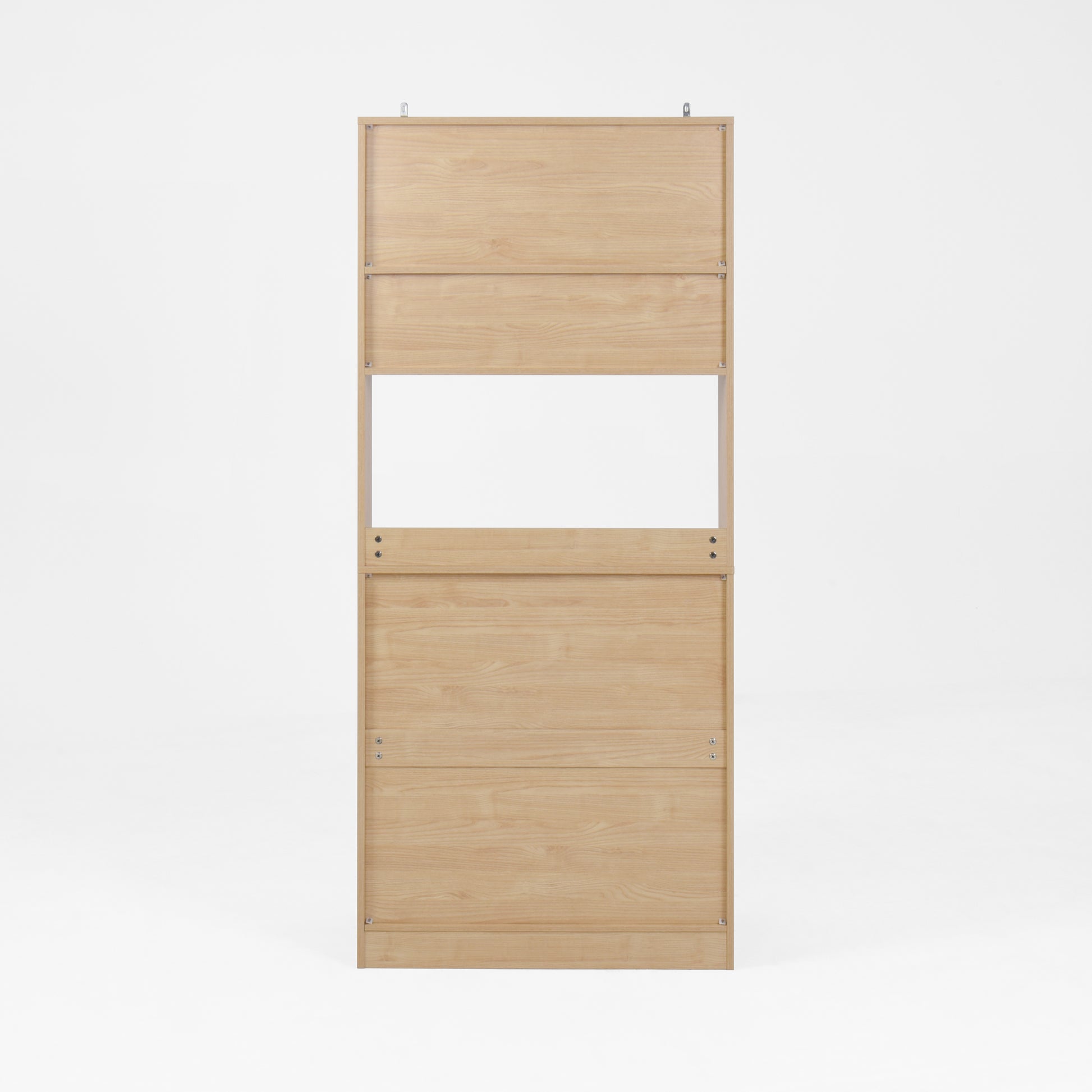 - Modern Door Panels and Color Contrast Design: The panels of this modern kitchen storage cabinet boast an Wood splicing molding design, radiating a refined yet effortless style while highlighting texture and allure. and black cabinet handles, it effortlessly epitomizes the essence of casual luxury, elevating the style