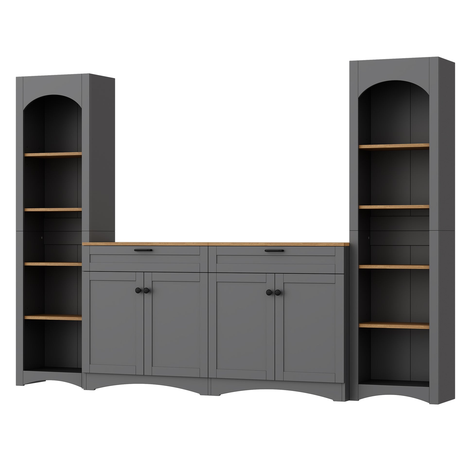 ON-TREND 3-Piece Farmhouse Entertainment Center with Storage Cabinet for TVs Up to 70', Mid-Century TV Stand with Bookshelf, Rustic Versatile Sideboard with Adjustable Shelves for Living Room, Grey