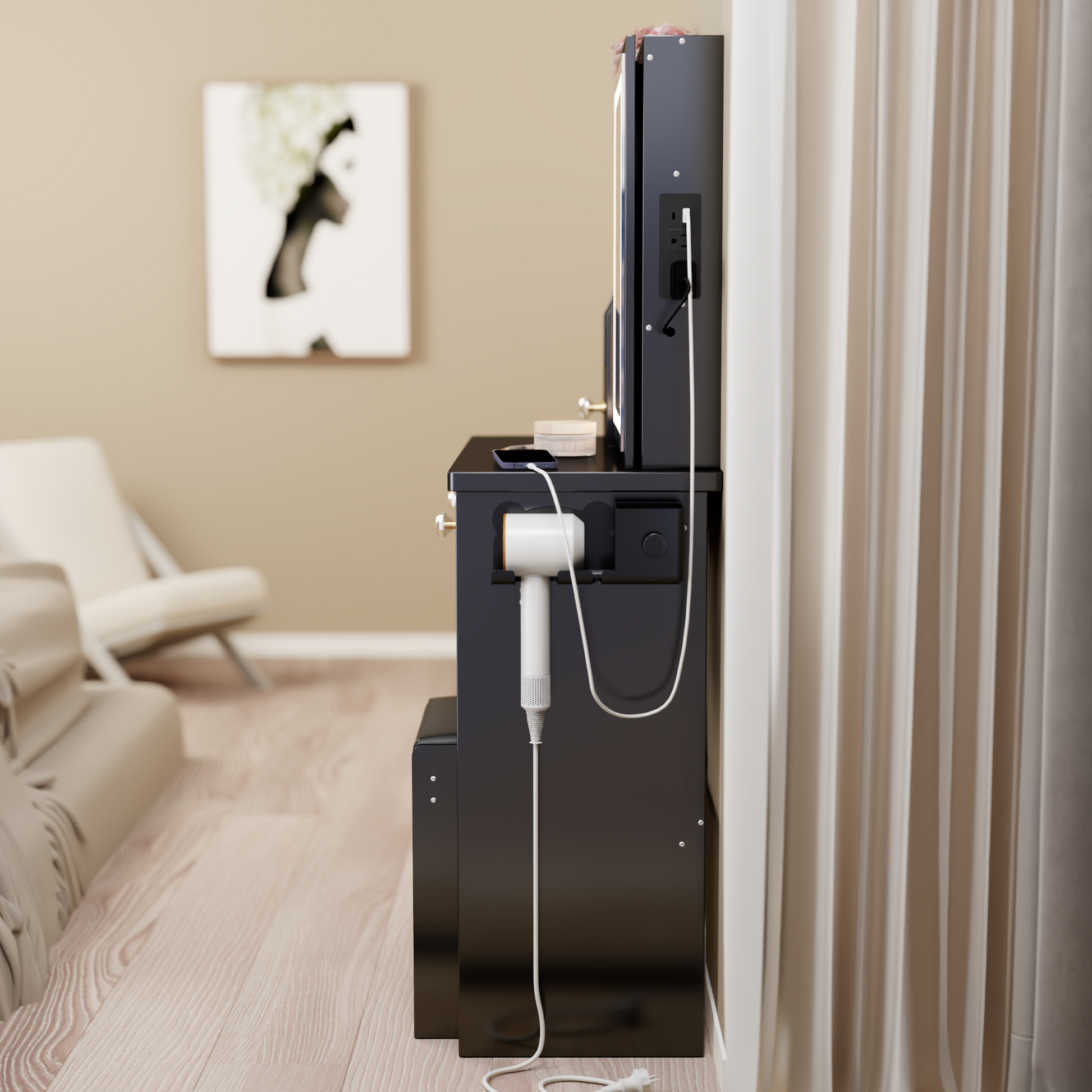 - [Built in 2 AC power ports, 1 USB port, and 1 TYPE C fast charging port]: Equipped with a built-in socket, including 2 AC power ports, 1 USB port, and 1 TPYE C fast charging port, it can easily charge your mobile phone or tablet. Two AC power ports allow you to use curling iron and hair dryer simultaneously while you make up.