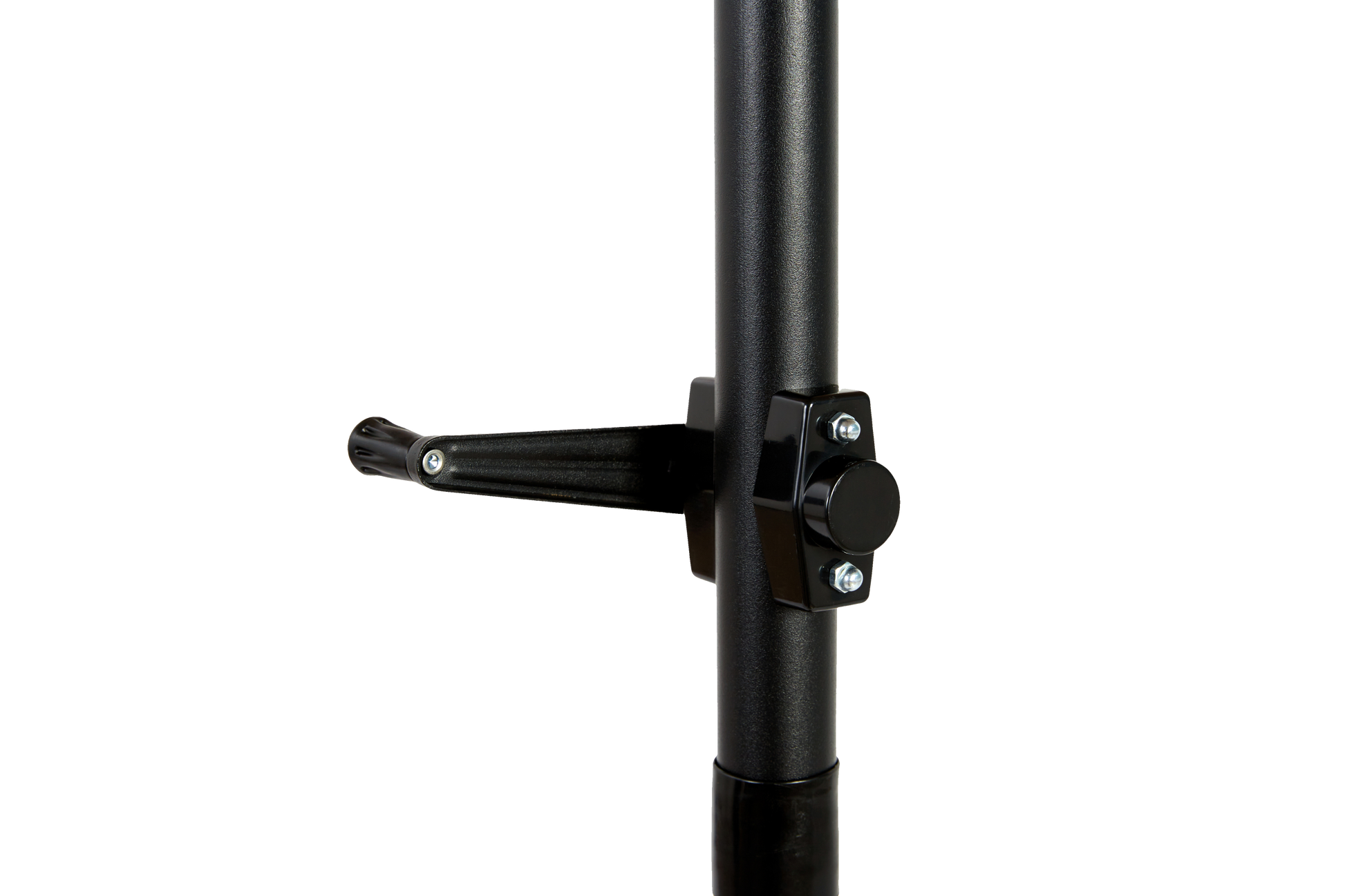 This market umbrella has a crank mechanism, you can easily open and close the umbrella in a few seconds by rotating the crank handle. No base are included and lightweight.