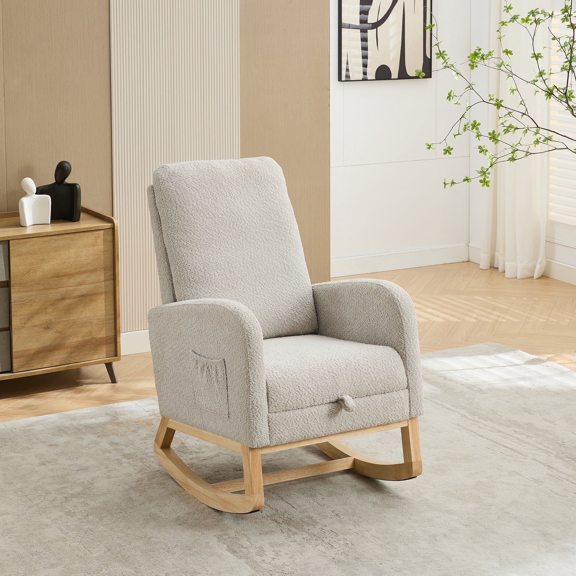 25.4'W Rocking Chair for Nursery, High Back Glider Chair with Retractable Footrest, Side Pocket, Rocking Accent Armchair with Rubber Wood Legs for Living Room/Bedroom.Light Gray