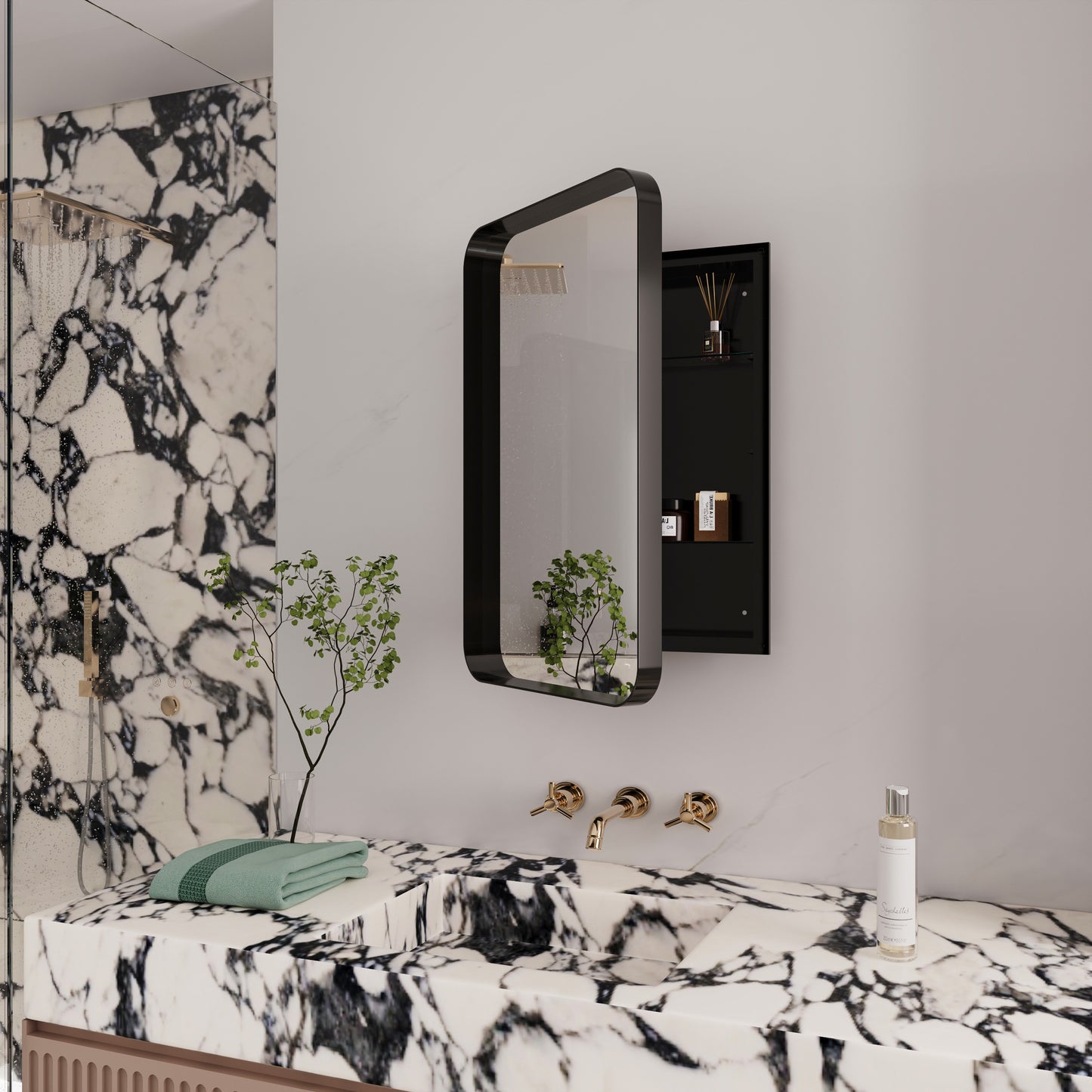 Recessed Black Metal Framed Medicine Cabinet with Mirror and Adjustable Shelves
