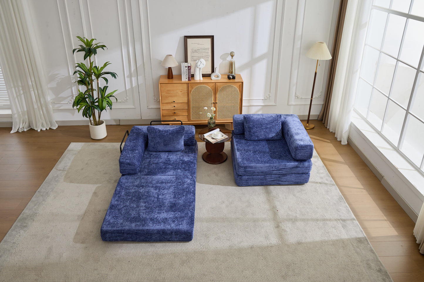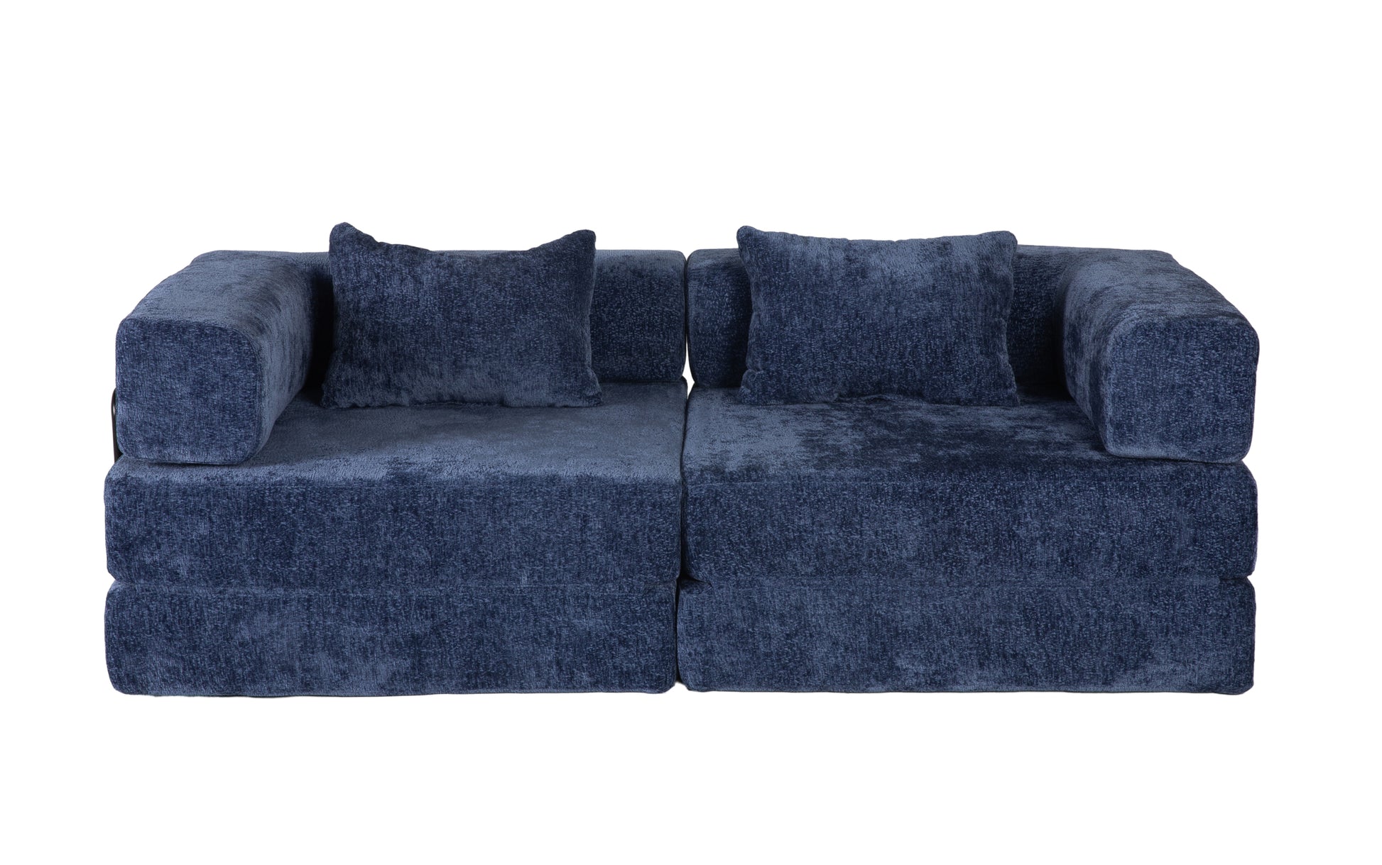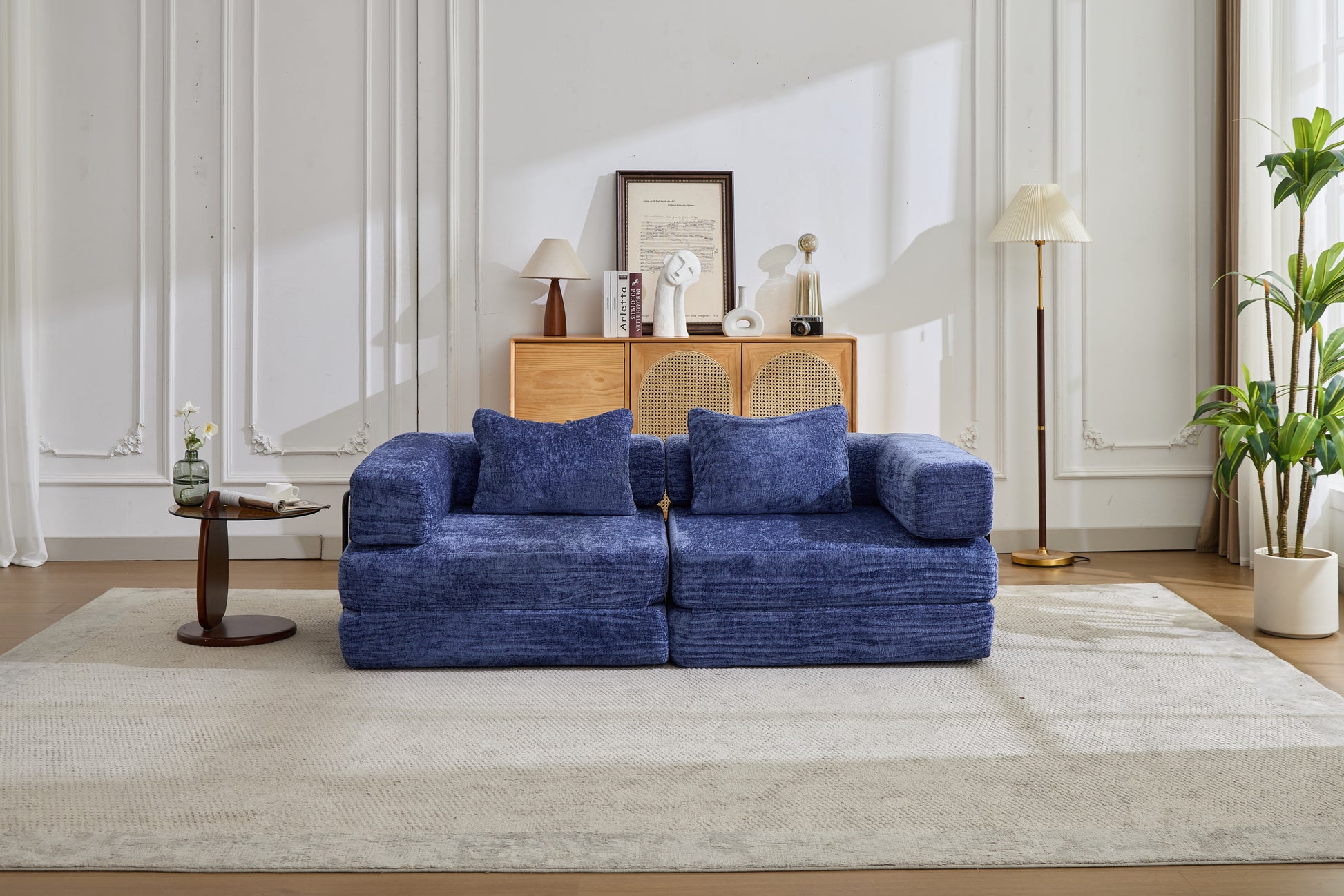 Compression Sofa,Convertible Floor Sofa Bed with Fixed-Shape Frame, Loveseats Boneless Modular Sectional Sofa,No Assembly Required,Chenille fabric,for Living Room Bedroom,Dark Blue